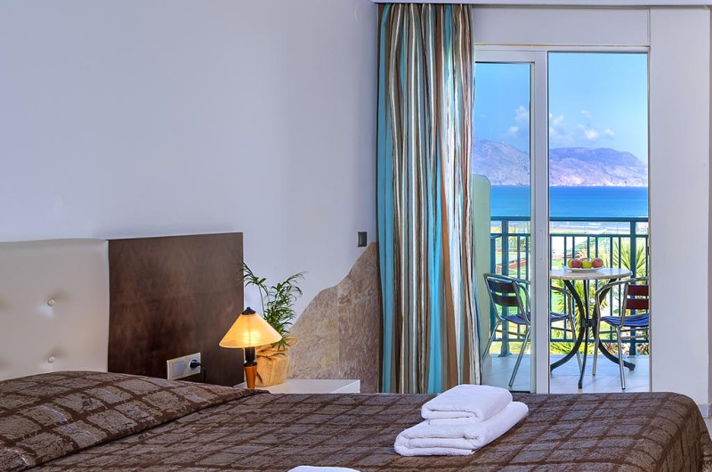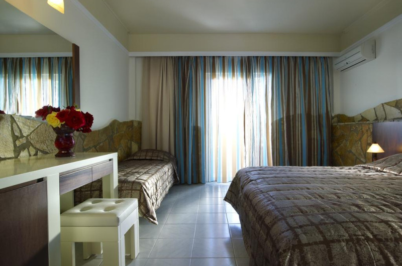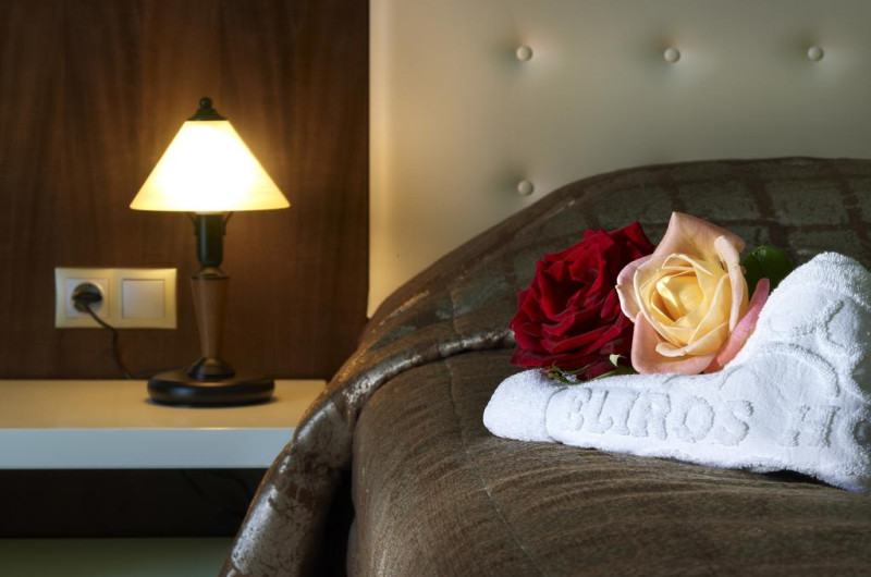 În camere există baie cu cadă sau duș prevăzută cu foehn. Camerele confortabile de la Eliros Mare au pardoseală de gresie/ marmură, aer condiționat și Tv cu canale prin satelit. Unele camere au vedere la mare. Oaspeții au acces gratuit la serviciul Wi-fi în camere. Curățenia in cameră se face zilnic. Proprietatea oferă camere pentru familie cu o suprafață mai mare și un număr mai mare de paturi față de cele standard. Se pot rezerva de asemenea camere pentru nefumători.