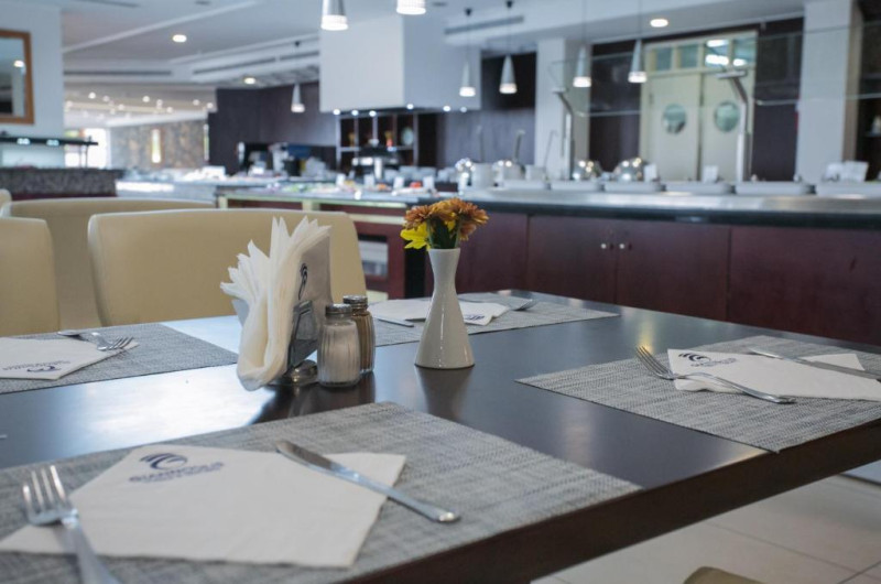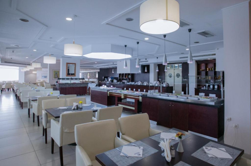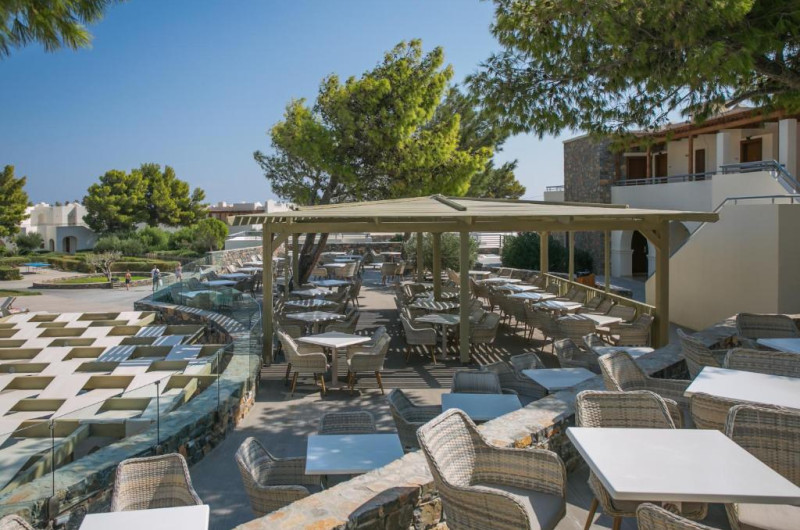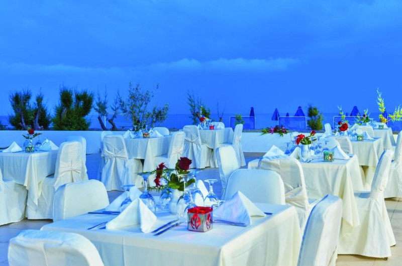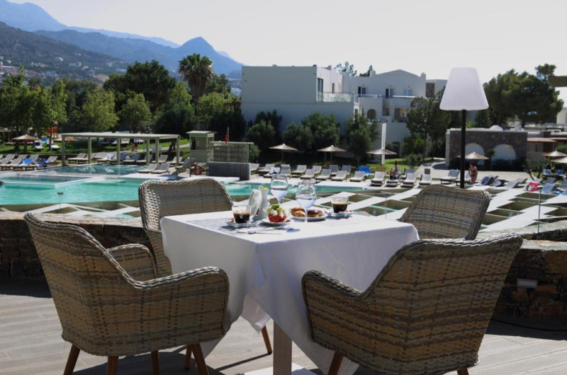 Restaurantul hotelului servește micul dejun, pranzul și cina, cu accent pe bucătăria cretană, asiatică și mediteraneană. Cocktail-uri, gustări și o varietate de băuturi răcoritoare sunt disponibile pe tot parcursul zilei la barul de la piscină și la barul de pe plajă.