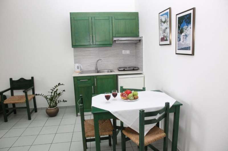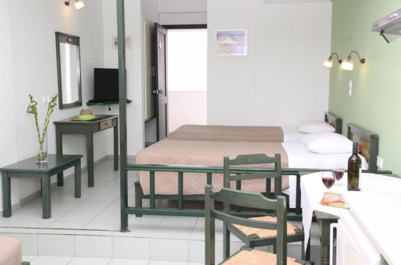 Aparthotelul se află la aproximativ 500 de m de plaja cu nisip, direct în centrul Plataniás (Rethymno), într-un cartier dinamic cu magazine și locuri de divertisment. Pe lângă diverse baruri, puburi și restaurante, în zonă se găsesc și locuri de făcut cumpărături. Cel mai apropiat aeroport este Chania (CHQ) și se află la aproximativ 65 de km, la Heraklion (HER) se poate ajunge în cam 79 de km.