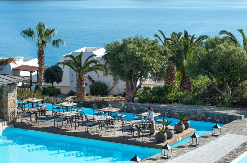 Oaspetii isi pot incep ziua cu un mic dejun tip bufet american. Masa de pranz include mancăruri mediteraneene si este servită la restaurantul Mirabello. Taverna Symposium, cu specific grecesc, serveste specialităti originale grecesti si cretane. Se pot face pregătiri pentru a cina pe plajă la lumina lumanărilor.