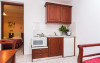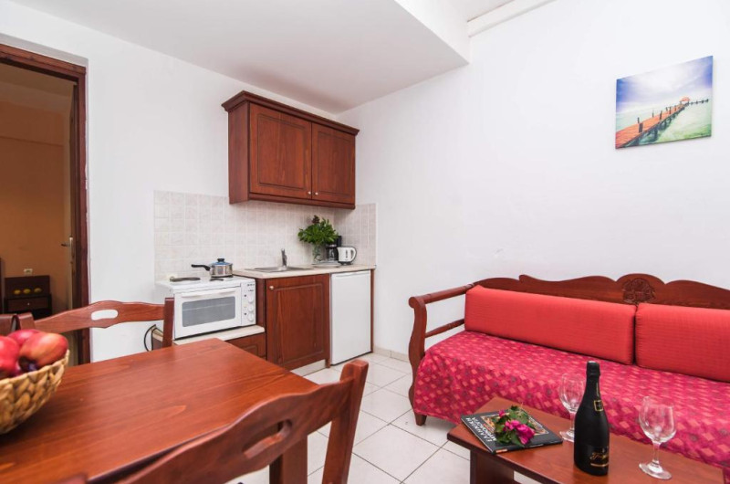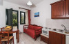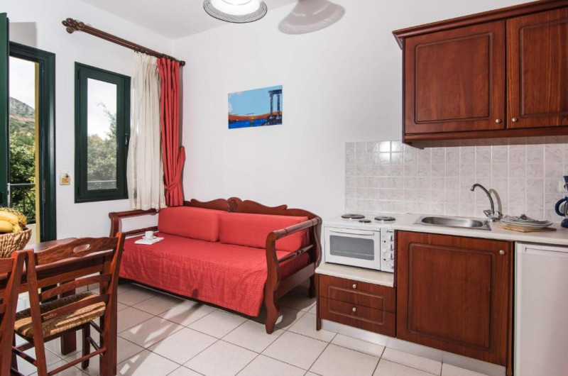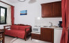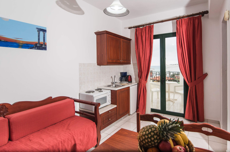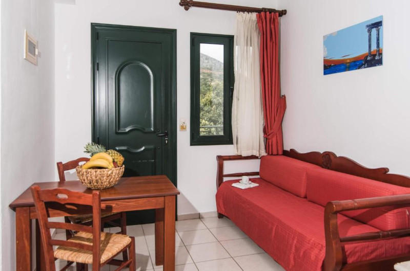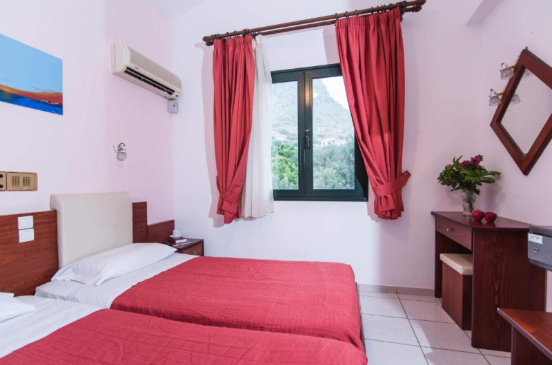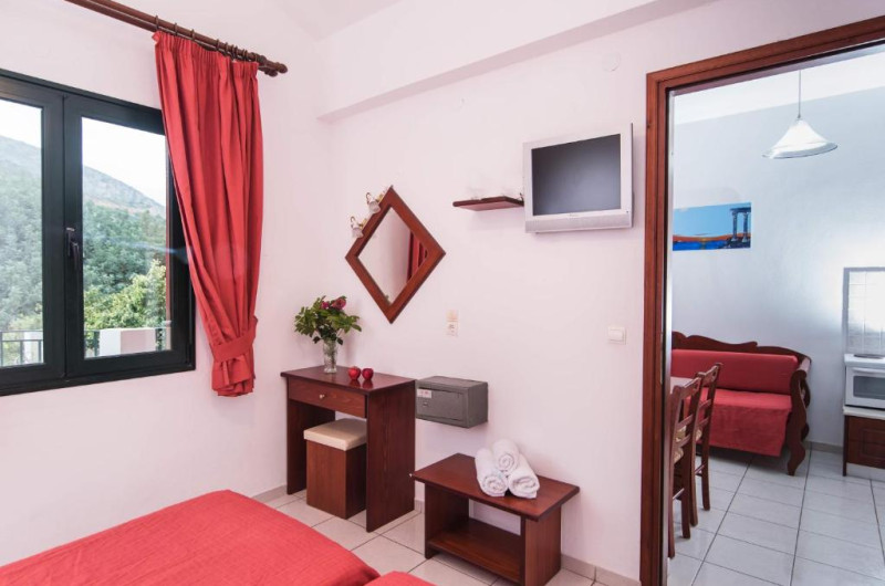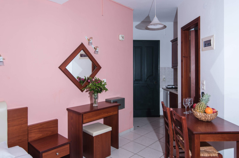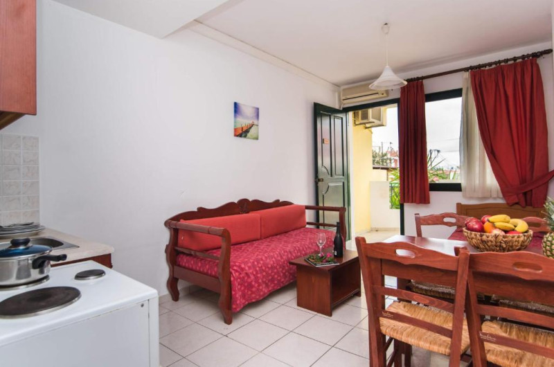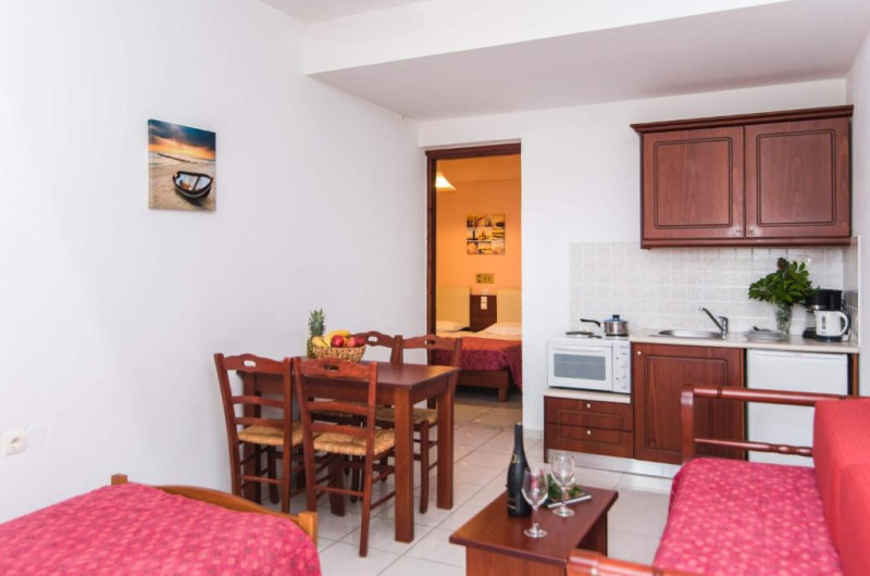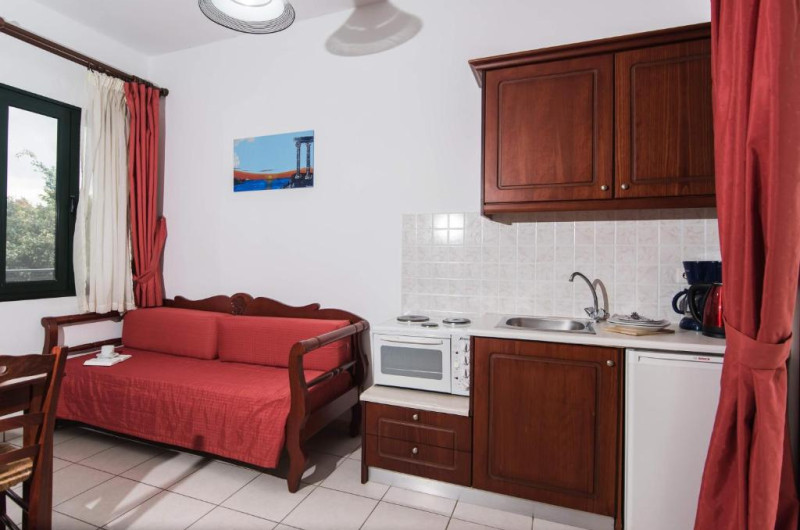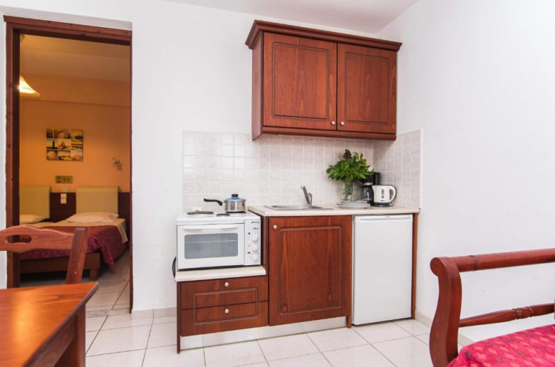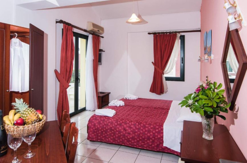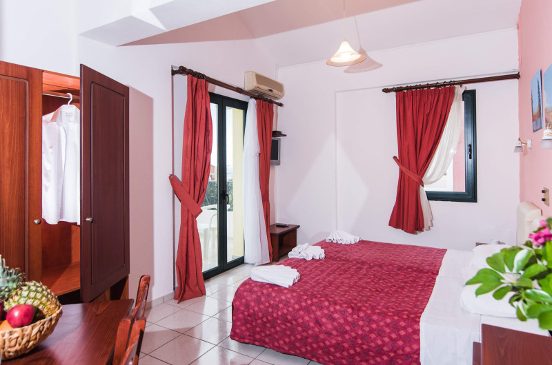 In camere se găsesc o bucătărie și o baie, iar aparatul de aer condiționat creează o atmosferă plăcută. In majoritatea spațiilor de cazare clienții beneficiază de vedere spre mare de pe balcon sau de pe terasă. Camerele au un pat dublu. Opțional pot fi rezervate dormitoare separate. Lucrurile de valoare pot fi păstrate in siguranță intr-un seif. Există o chicinetă echipată cuprinzător cu un frigider, un minifrigider, un aragaz și un aparat pentru cafea/ceai. Telefonul, televizorul și WiFi-ul (gratuit) oferă un concediu confortabil. In baia dotată cu un duș și o cadă dispune de un uscător de păr. Pentru familiile cu copii stau la dispoziție camere de familie.