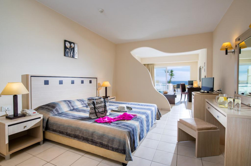 Sunt disponibile 202 camere. Fiecare cameră dispune de un aparat pentru preparare cafea sau ceai, cană-fierbător și minibar. Oaspeții pot solicita serviciul de room service pentru a servi masa sau diverse băuturi. În camere există baie cu cadă sau duș ce are în dotare foehn și articole de toaletă gratuite. Unele camere au balcon cu vedere la mare, unde oaspeții pot admira apusul sau răsăritul soarelui. Camerele confortabile de la Blue Marine Resort & Spa au pardoseală de gresie/ marmură, aer condiționat, Tv cu canale prin satelit și seif. Oaspeții au acces gratuit la serviciul Wi-fi în camere. Curățenia in cameră se face zilnic. Toate camerele spațioase de la Blue Marine Resort & Spa au zonă de relaxare cu canapea, ceea ce oferă un plus de confort. Proprietatea oferă camere pentru familie cu o suprafață mai mare și un număr mai mare de paturi față de cele standard.