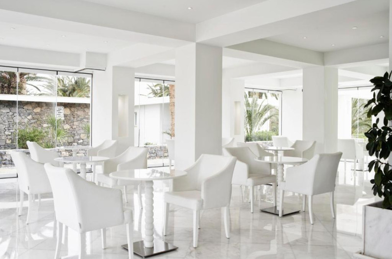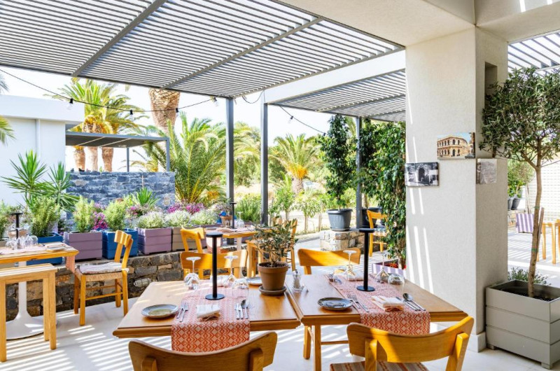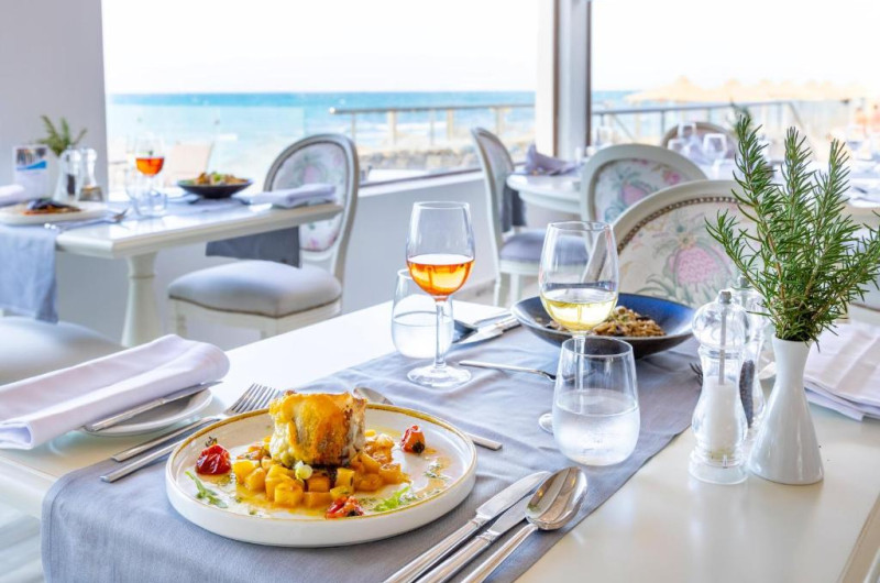 Situat aproape de plajă, restaurantul principal are vedere la Marea Egee și oferă mic dejun, pranz și cină in stil bufet. Restaurantul à la carte oferă mancăruri delicioase grecești și internaționale, salate de aperitive și deserturi.