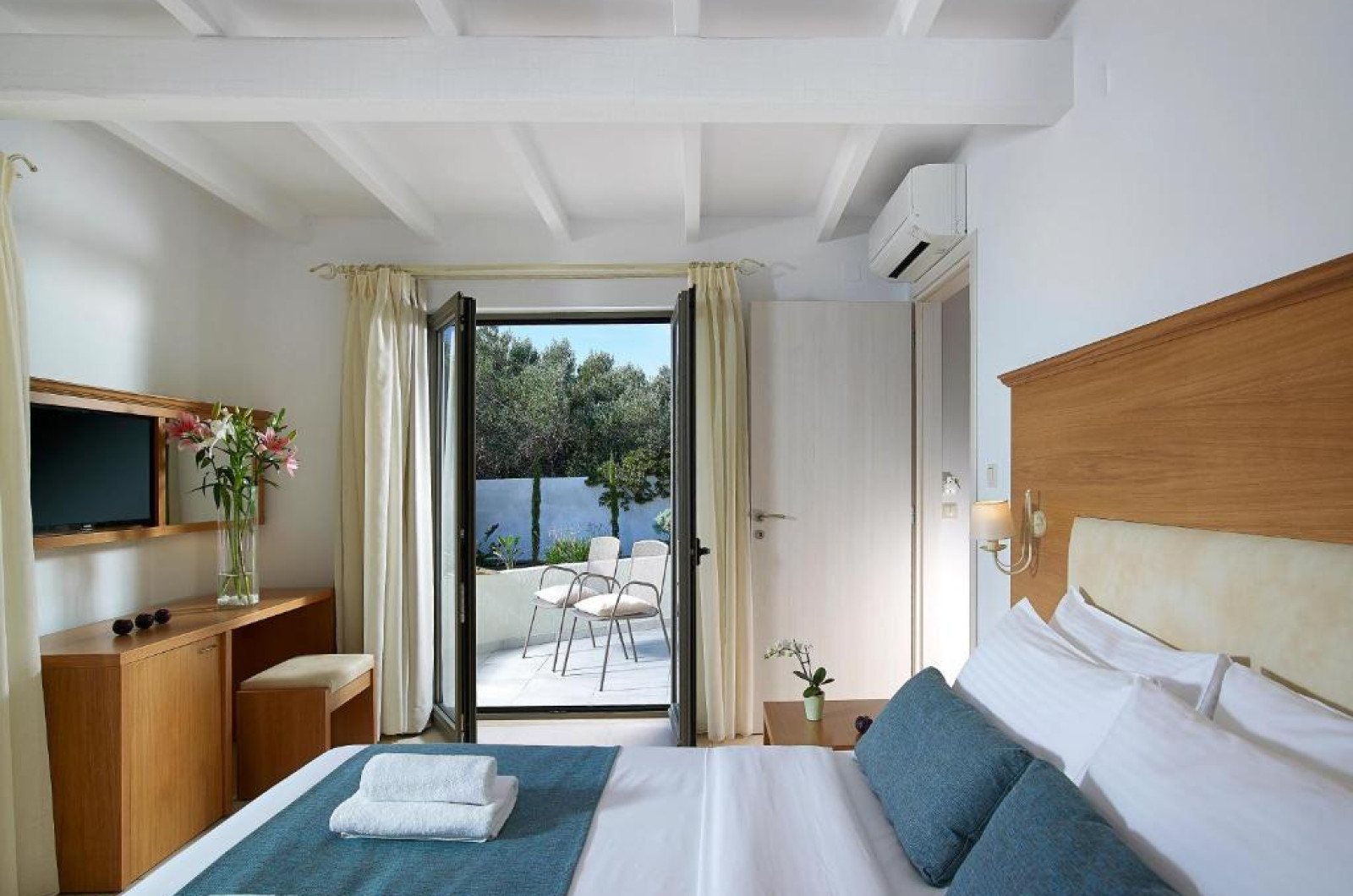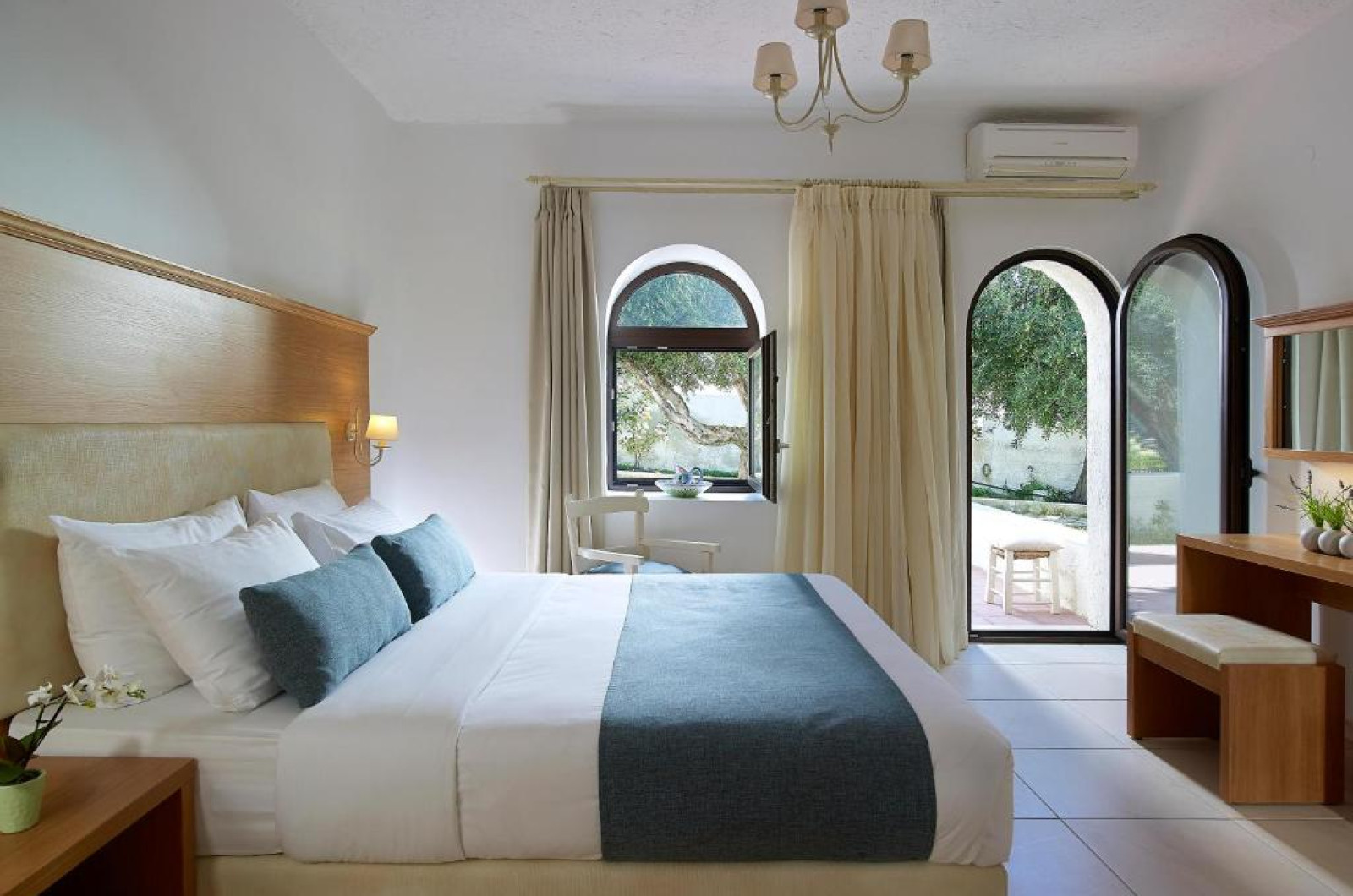 Camerele și bungalourile sunt răspandite in grădina cu vegetație mediteraneană, oferind intimitate și confort. Majoritatea unităților de cazare au vedere la Marea Mediterană sau la grădină.