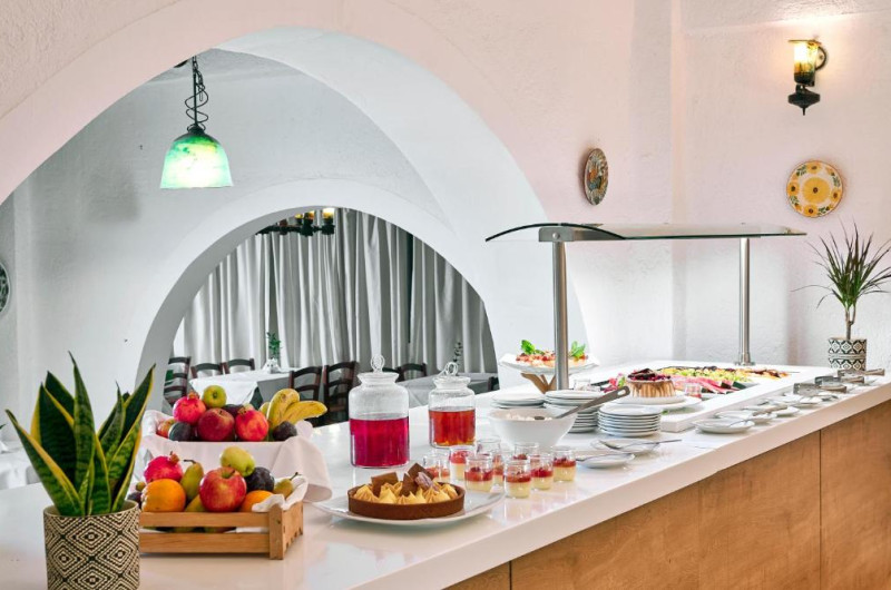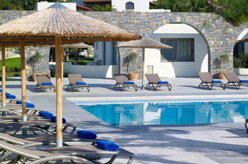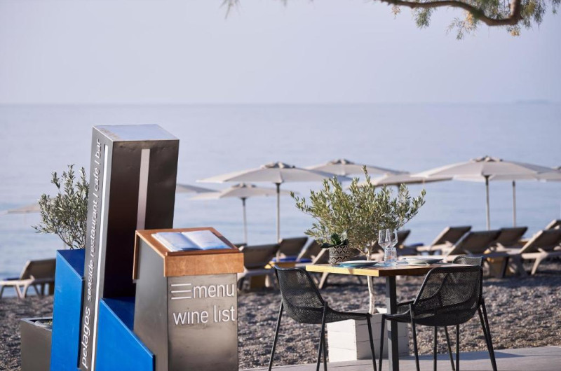 Hotelul dispune de piscină pentru adulți, piscină pentru copii, restaurant principal cu preparate grecești și internaționale, și bar la piscină. Pentru momentele active, oaspeții au la dispoziție teren de tenis și facilități pentru sporturi acvatice pe plajă.