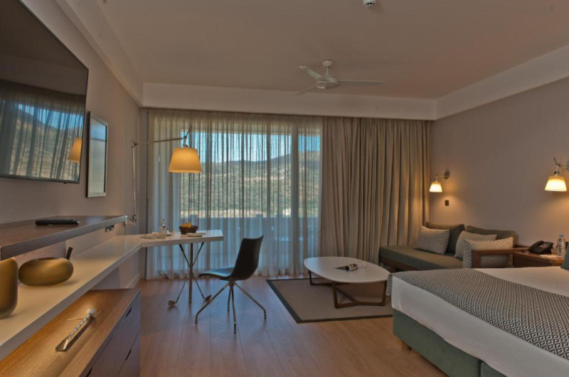 Toate unitătile hotelului includ TV cu ecran plat. Camerele au baie privată cu o cadă, WiFi privat de foarte mare viteză, articole de toaletă gratuite și uscător de păr. Camerele de la Crete Golf Club Hotel au zonă de relaxare.