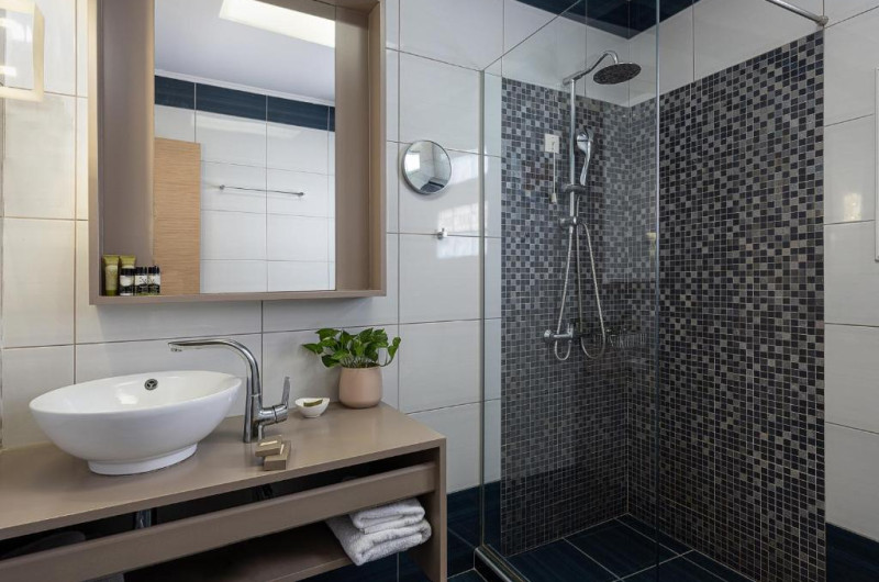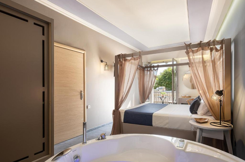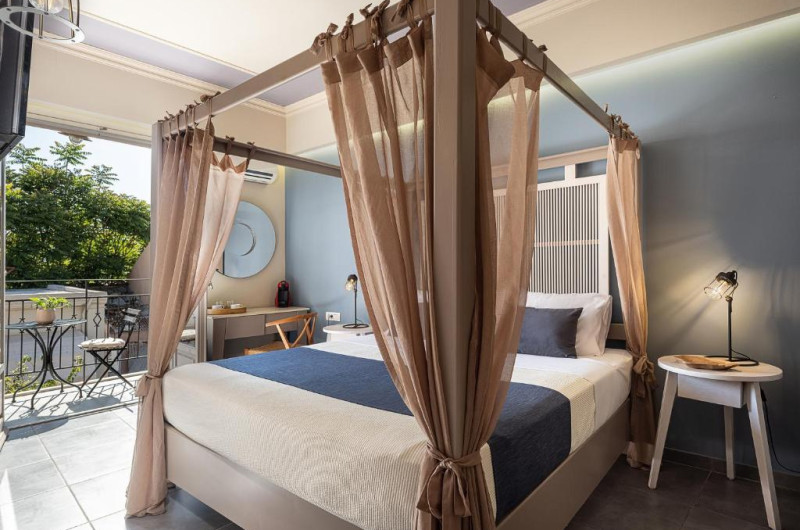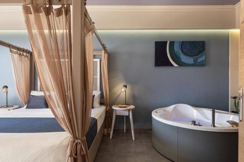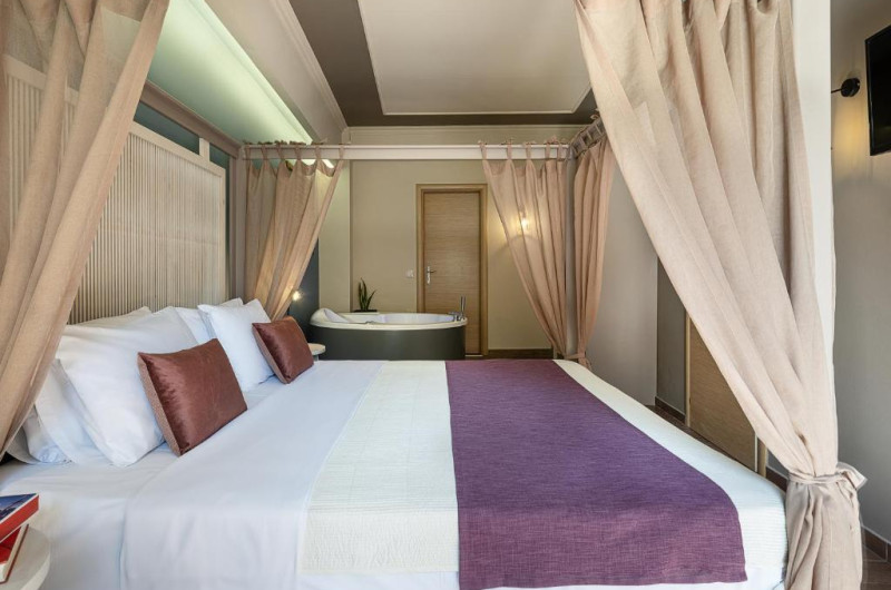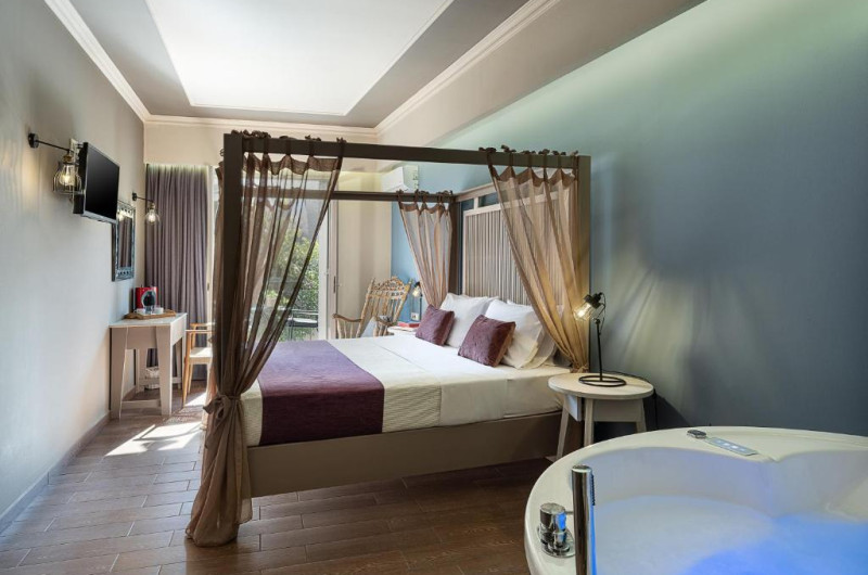 Oferind interioare relaxante și paturi cu baldachin, toate camerele de la Elia se deschid spre un balcon. Fiecare are TV prin satelit, aparat de cafea și minifrigider. Baia modernă are cabină de duș, papuci și articole de toaletă gratuite.
