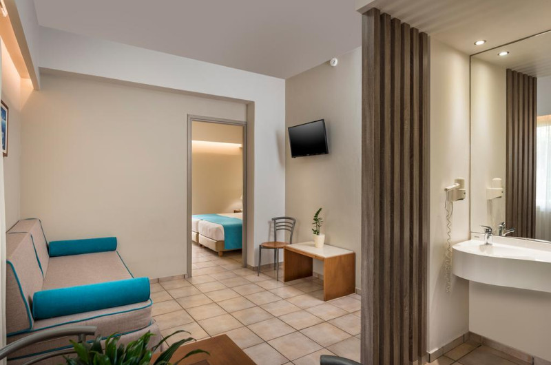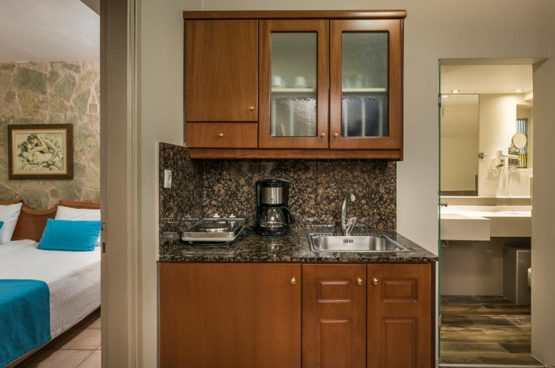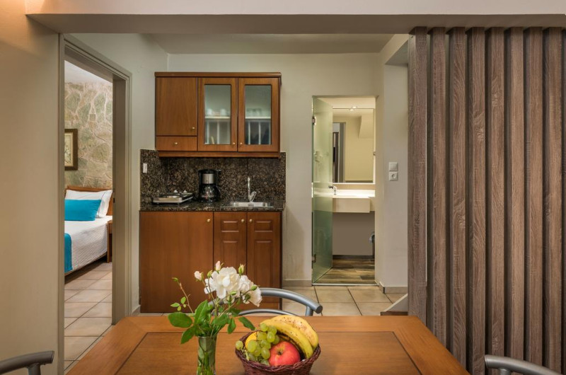 Sunt disponibile 23 camere. Camerele confortabile de la Elotis Suites sunt dotate cu pardoseală de gresie/ marmură, aer condiționat, Tv și seif. Fiecare cameră dispune de mașină pentru preparare cafea sau ceai și fierbător Camerele au balcon cu vedere la grădină. În camere există baie cu duș ce are în dotare foehn și articole de toaletă gratuite. Oaspeții au acces la serviciul Wi-fi în camere contra cost. Curățenia in cameră se face zilnic. Există unități de cazare care au chicinetă utilată cu frigider, plită de gătit și ustensile de bucătărie. De asemenea, sunt disponibile o zonă de luat masa și un cuptor cu microunde. Proprietatea oferă camere pentru familie cu o suprafață mai mare și un număr mai mare de paturi față de cele standard.