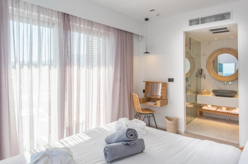 Hotelul va pune la dispoziție oaspeților camere cu aer condiționat, birou, aparat de cafea, cutie de valori, TV cu ecran plat, terasă și baie privată cu duș. Fiecare cameră are fierbător de apă, iar unele camere au balcon, iar altele oferă și vedere la mare. Fiecare cameră de la Enorme Ammos Beach Resort include lenjerie de pat și prosoape.