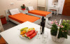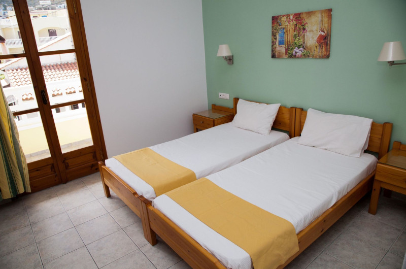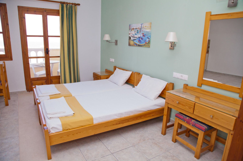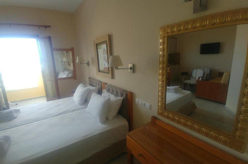In camere există un aparat de aer condiționat. De la balconul sau de pe terasa care se găsesc in majoritatea camerelor, clienții au vedere spre mare. Camerele au un pat dublu sau o canapea. Sunt disponibile dormitoare separate. In plus, pentru cei mici sunt disponibile paturi pentru copii. Lucrurile de valoare pot fi păstrate in siguranță intr-un seif. Datorită unui frigider, unui minifrigider, unui aragaz și unui aparat pentru cafea/ceai, chicineta este bine echipată pentru cei ce se aprovizionează singuri. In plus, există un telefon, un televizor și WiFi (gratuit). In baia dotată cu un duș și o cadă există un uscător de păr.