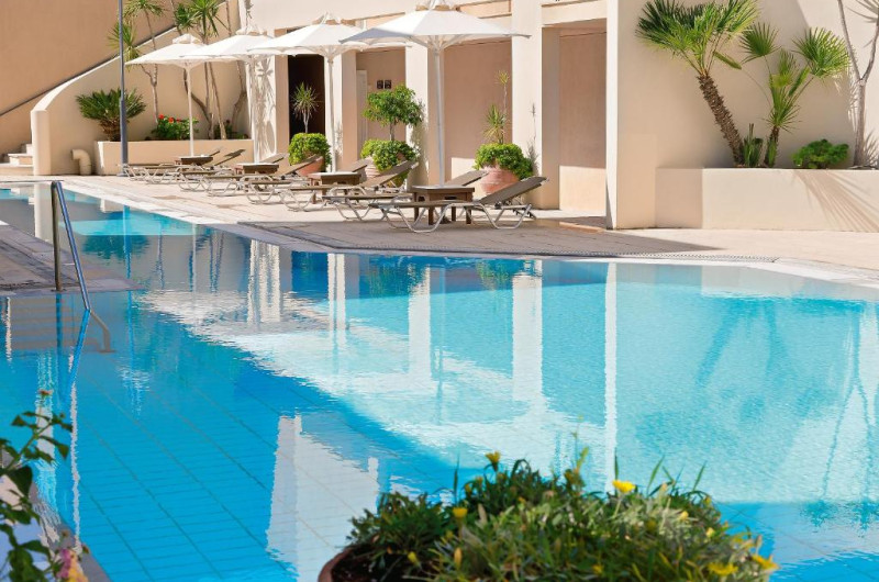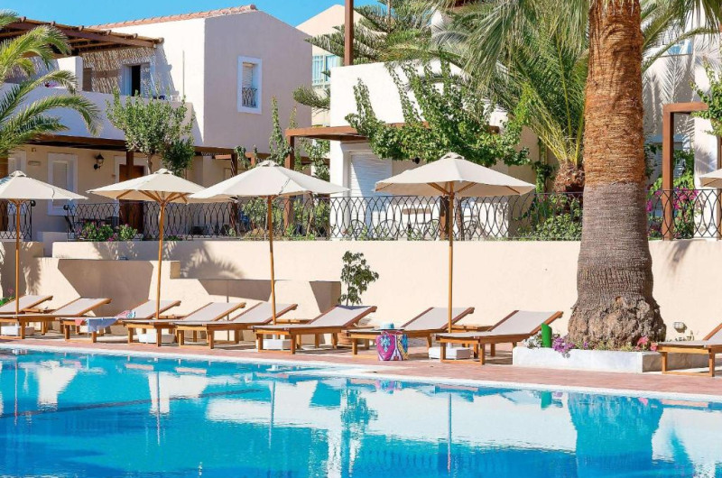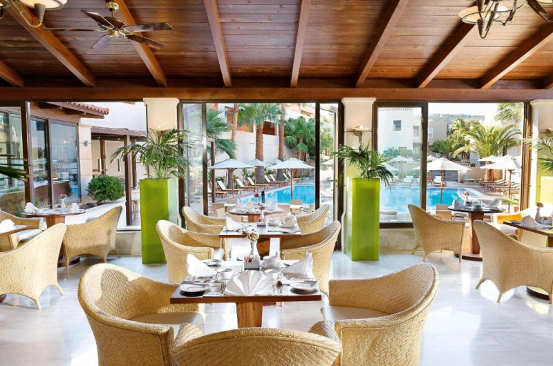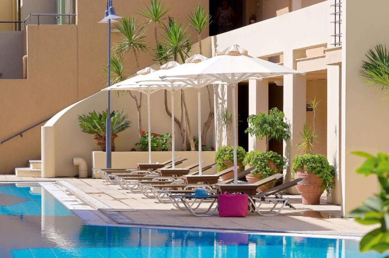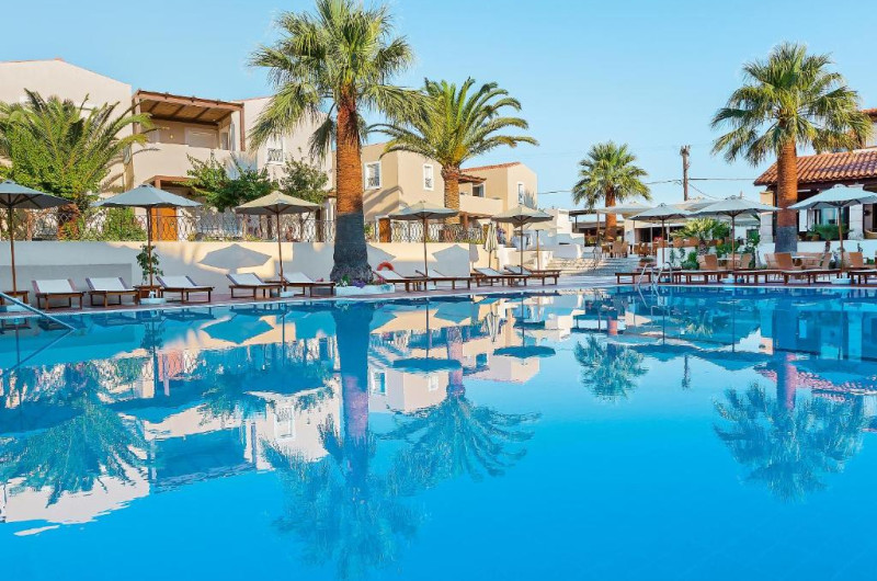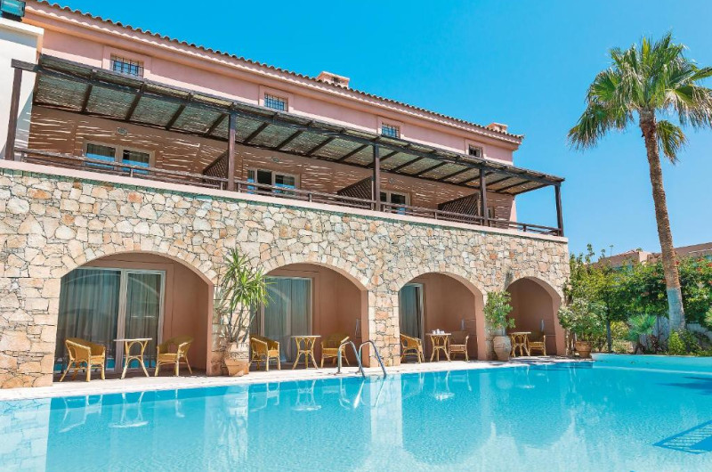 Camerele luminoase și confortabile sunt decorate in nuanțe mediteraneene și sunt dotate cu balcoane sau terase private. Facilitățile includ o piscină exterioară inconjurată de șezlonguri și umbrele, un restaurant cu specific grecesc și internațional, precum și un bar la piscină unde puteți savura cocktailuri răcoritoare.