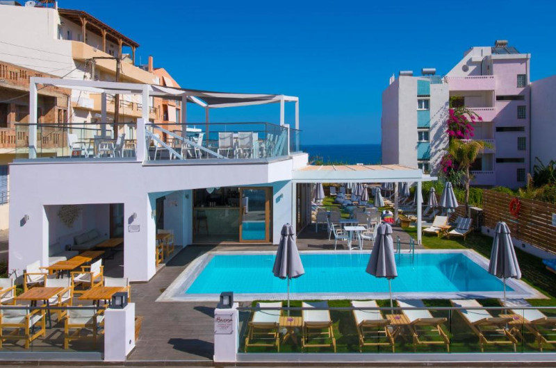 Situat la doar 50 de metri de plajele cu nisip din Hersonissos, Hotelul Harma Boutique cuprinde 4 clădiri și are un restaurant și o piscină cu bar. Hotelul oferă camere cu aer conditionat, WiFi gratuit si balcon cu vedere la grădină, la munte sau la Marea Cretei.