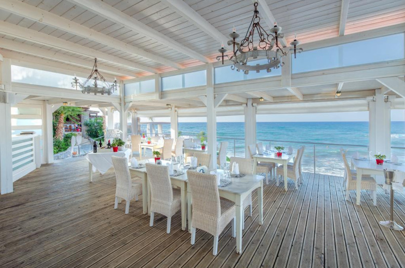 La Ikaros Beach Luxury Resort And Spa oaspeții au la dispoziție 6 restaurante unde pot savura mâncăruri delicioase, în stil bufet sau à la carte. Preparate din bucătăria mediteraneeană și italiană sunt preparate zilnic. Masa poate fi servită atât în interior, cît si în aer liber, pe terasă, în funcție de vreme. 3 baruri, dintre care unul la piscină, sunt disponibile cu o ofertă variată de băuturi răcoritoare și alcoolice. Pentru cei cu anumite nevoi de nutriție, Ikaros Beach Luxury Resort And Spa oferă meniuri pentru diete speciale.