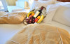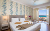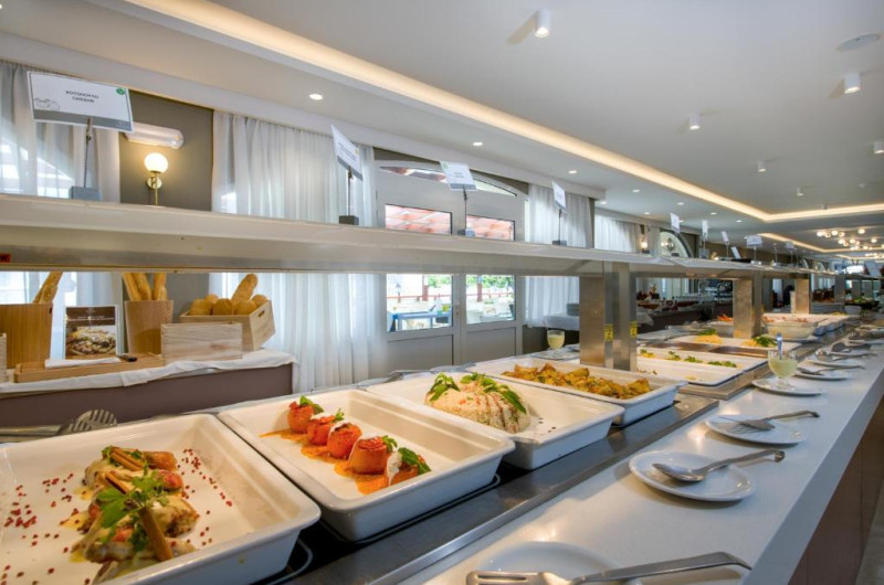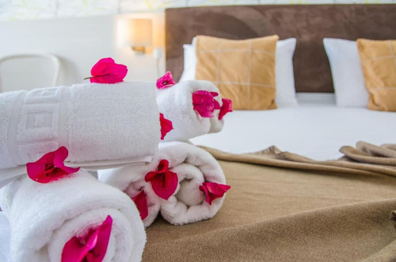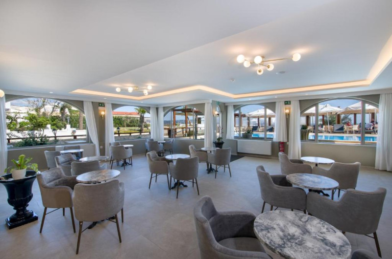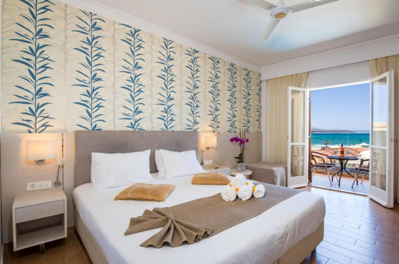 An American buffet breakfast is served in the hotel's restaurant's breakfast room or on the veranda, just a few steps from the seafront. For a perfect evening, guests can enjoy a romantic candlelit dinner accompanied by a bottle of wine from the Kalyves Beach Hotel's wine list.