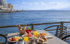 Hotelul servește mic dejun tip bufet și are zone de lounge, unele cu aer condiționat, precum și un colț cu internet, un colț cu TV și video și o cafenea splendidă, situată chiar langă malul mării.