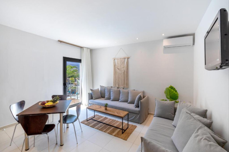 Sunt disponibile 26 camere. În camere există baie cu cadă sau duș ce are în dotare foehn și articole de toaletă gratuite. Unele camere au balcon cu vedere la mare sau la piscină. Fiecare cameră dispune de un aparat pentru preparare cafea sau ceai, cană-fierbător și minibar. Oaspeții pot solicita serviciul de room service pentru a servi masa sau diverse băuturi. Camerele confortabile de la La Stella Apartments au pardoseală de gresie/ marmură, aer condiționat, Tv cu canale prin satelit și seif. Oaspeții au acces gratuit la serviciul Wi-fi în camere. Curățenia in cameră se face zilnic. Anumite camere au cadă cu hidromasaj care asigură un plus de confort și răsfăț. Fiecare unitate de cazare include o chicinetă utilată cu frigider, plită de gătit și ustensile de bucătărie. De asemenea, este disponibilă o zonă de luat masa. Proprietatea oferă camere pentru familie cu o suprafață mai mare și un număr mai mare de paturi față de cele standard.