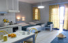 La proprietate există un snack-bar care oferă cafea, băuturi și gustări. Masa poate fi servită atât în interior, cît si în aer liber, pe terasă, în funcție de vreme. Oaspeţii îşi pot pregăti micul dejun şi alte mese şi le pot savura chiar pe balcon.