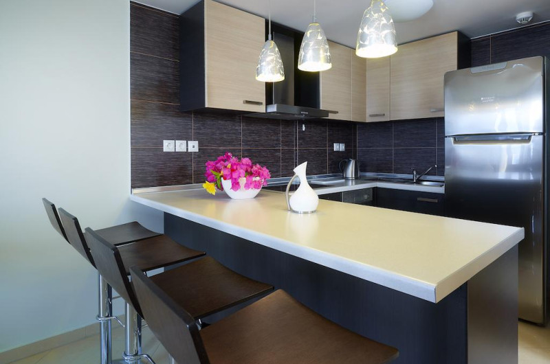 Sunt disponibile 40 camere. Fiecare cameră oferă cană-fierbător și mașină pentru prepare cafea sau ceai. Oaspeții pot solicita serviciul de room service pentru a servi masa sau diverse băuturi. Camerele au balcon cu vedere la mare sau la oraș, unde oaspeții pot admira apusul sau răsăritul soarelui. În camere există baie cu cadă sau duș ce are în dotare foehn și articole de toaletă gratuite. Camerele confortabile de la Macaris Suites & Spa au pardoseală de gresie/ marmură, aer condiționat, Tv cu canale prin satelit și seif. Oaspeții au acces gratuit la serviciul Wi-fi în camere. Curățenia in cameră se face zilnic. Anumite camere au cadă cu hidromasaj care asigură un plus de confort și răsfăț. În fiecare unitate de cazare există o bucătărie utilată cu plită de gătit și ustensile de bucătărie. Proprietatea oferă camere pentru familie cu o suprafață mai mare și un număr mai mare de paturi față de cele standard.