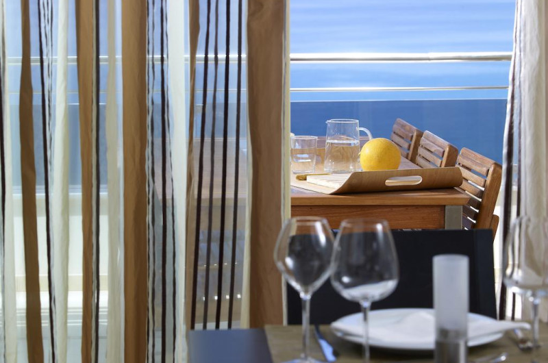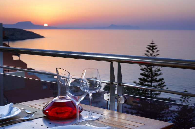 La Macaris Suites & Spa oaspeții au la dispoziție un restaurant care servește mâncare à la carte. Preparate din bucătăria grecească și internațională așteaptă să fie degustate în fiecare zi la micul dejun, prânz și cină. Masa poate fi servită atât în interior, cît si în aer liber, pe terasă, în funcție de vreme. Oaspeţii pot avea diverse băuturi răcoritoare sau alcoolice la bar.