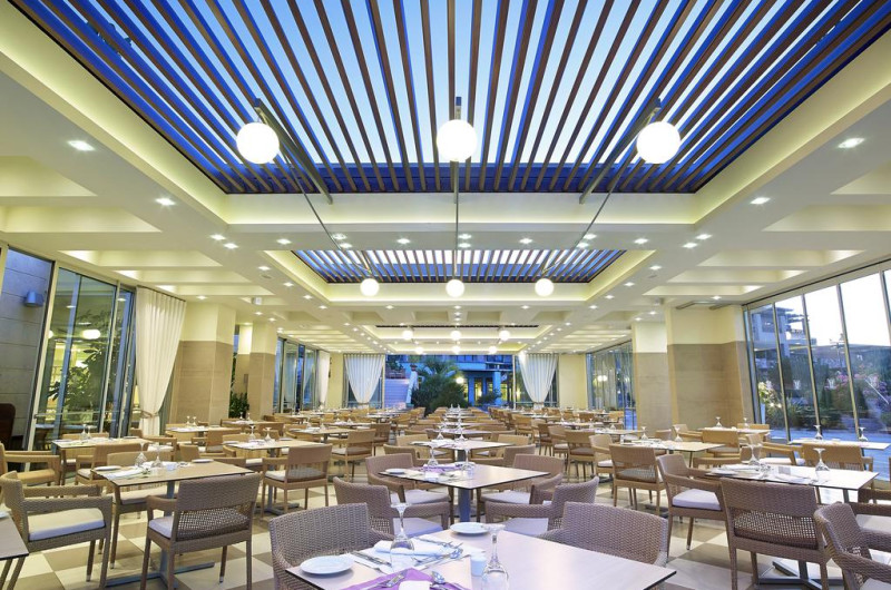 La Minoa Palace Resort & Spa oaspeții au la dispoziție 5 restaurante unde pot savura mâncăruri delicioase, în stil bufet sau à la carte. Preparate din bucătăria internațională, mediteraneeană și italiană propun mâncăruri pentru gusturi diverse.. Masa poate fi servită atât în interior, cît si în aer liber, pe terasă, în funcție de vreme. 3 baruri sunt disponibile cu o ofertă variată de băuturi răcoritoare și alcoolice. În cadrul proprietății există și un snack bar care servește băuturi și gustări. Pentru cei cu anumite nevoi de nutriție, Minoa Palace Resort & Spa oferă meniuri pentru diete speciale.