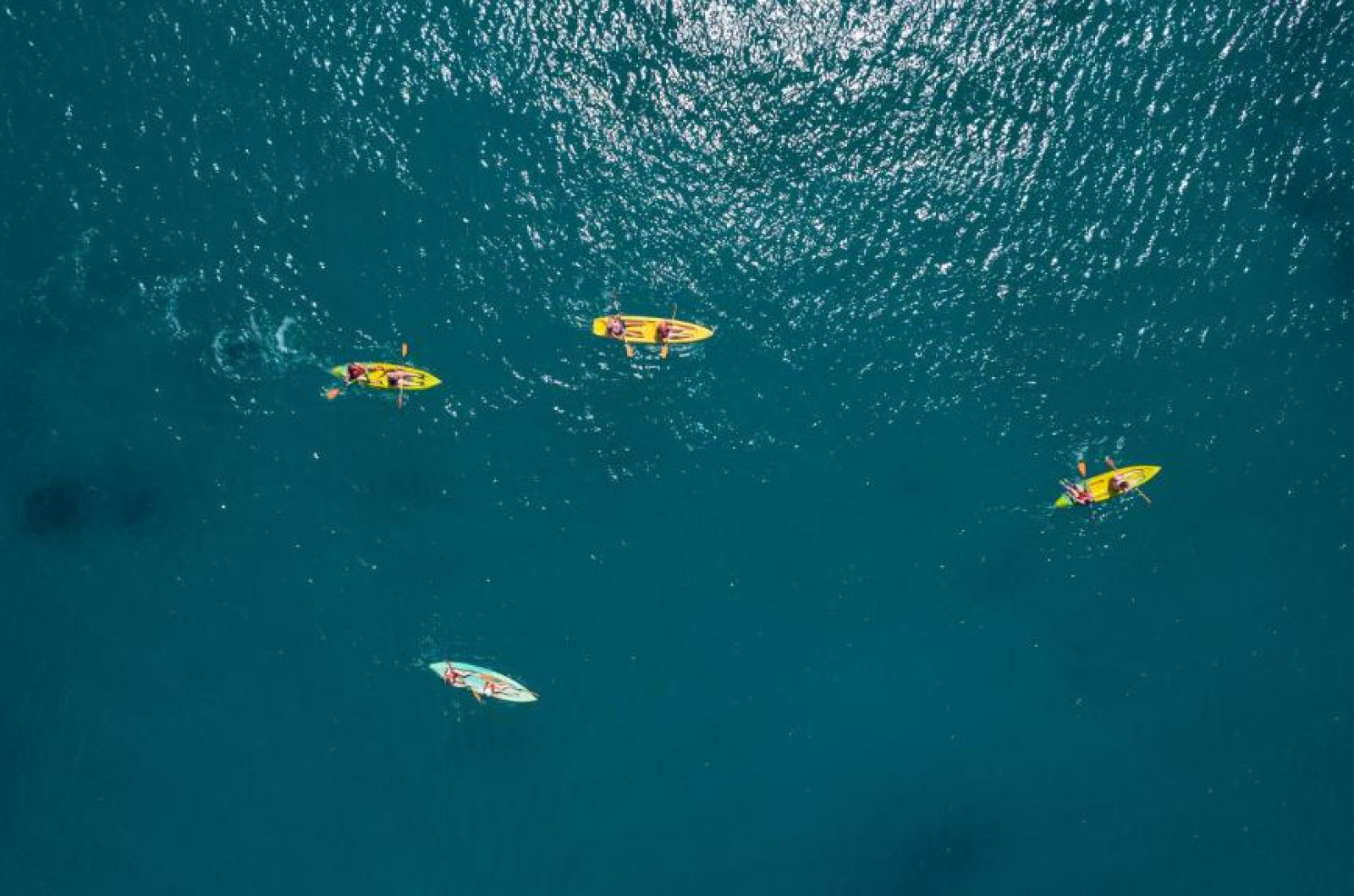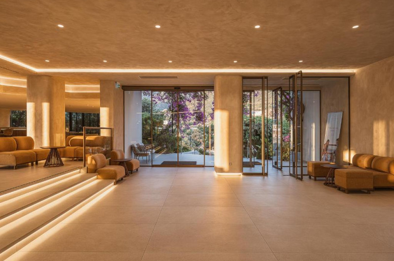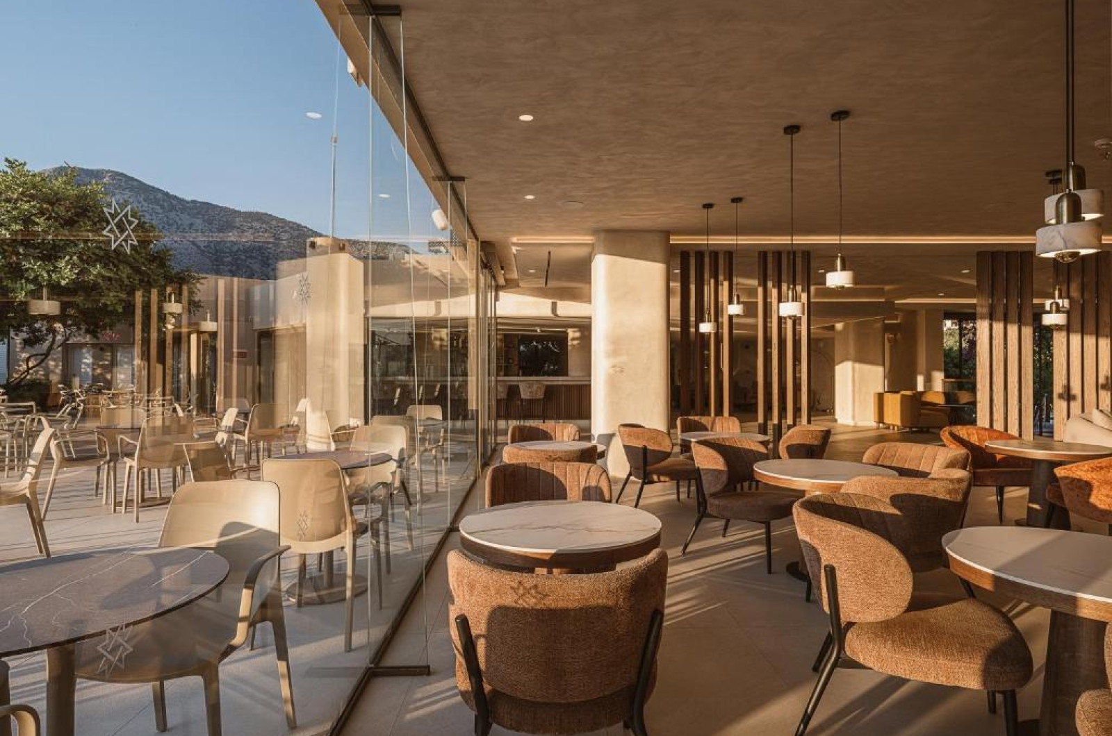 Micul dejun, pranzul și cina sunt servite la restaurantul cu vedere la mare și la munte. Băuturile și cafeaua sunt servite la barul principal și la barul de la piscină. Activitățile includ un mini-spa, tenis și o plajă.