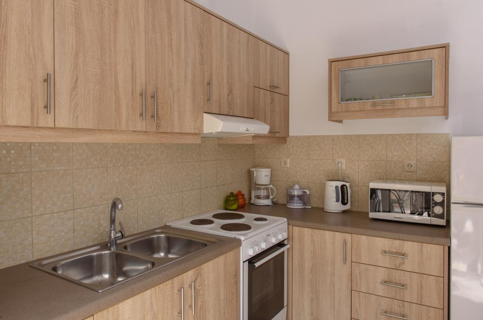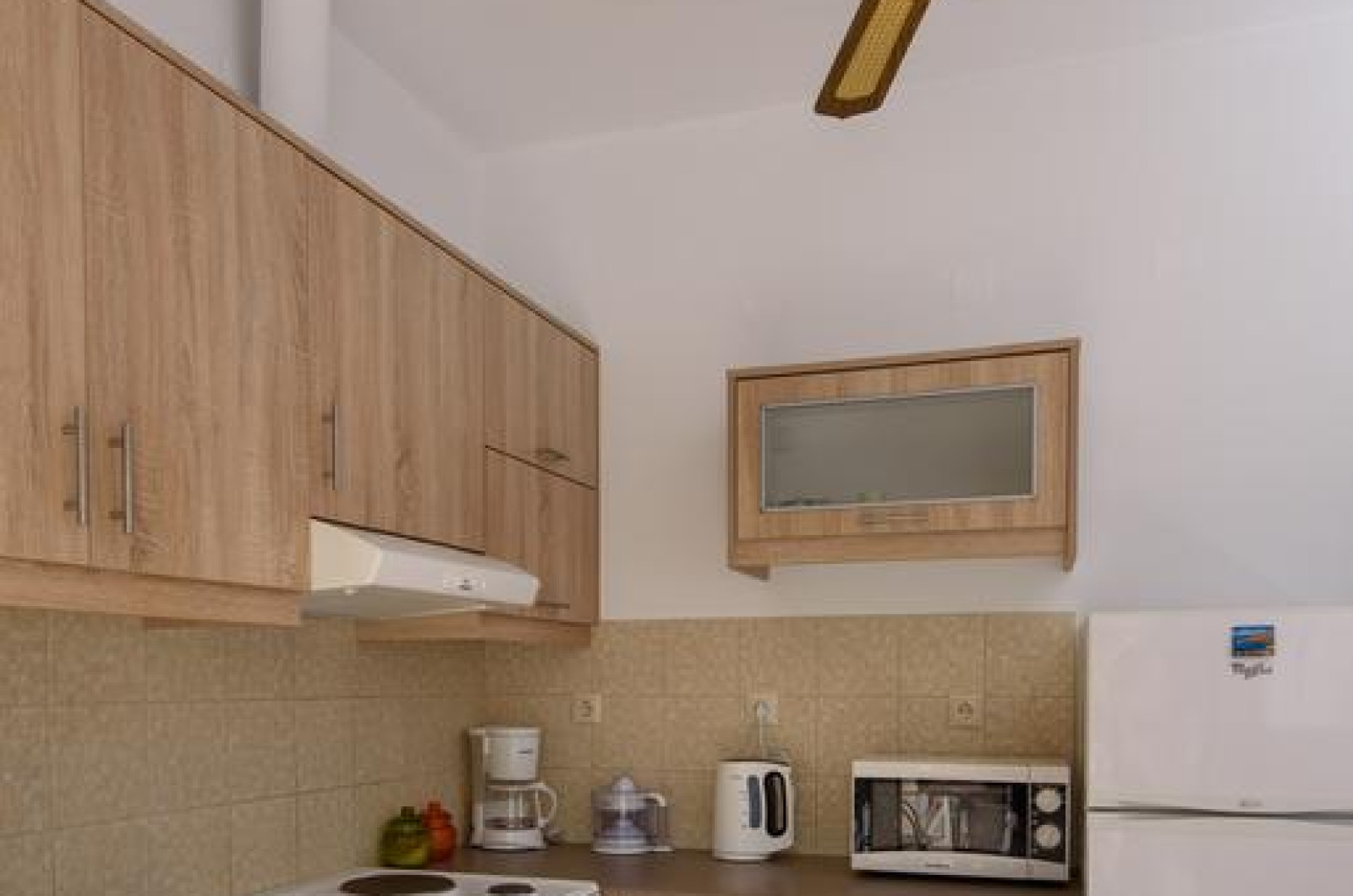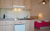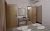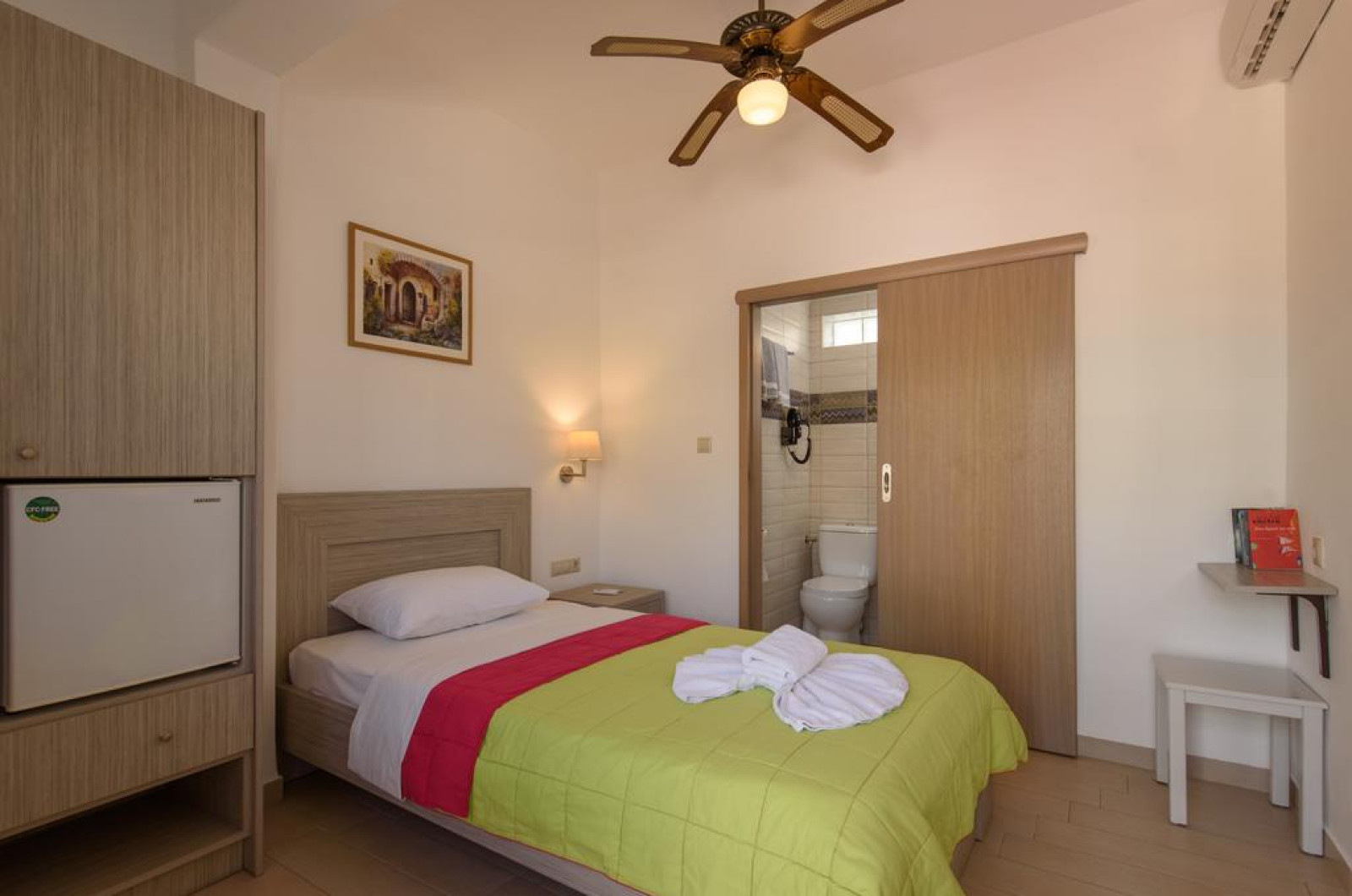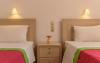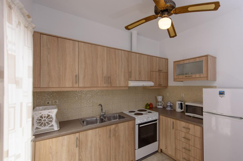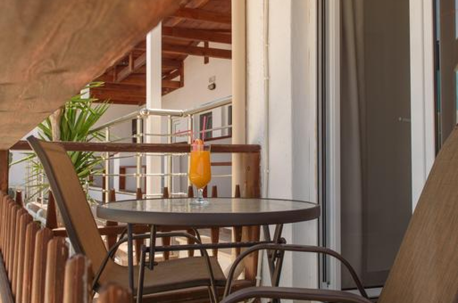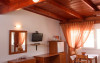 Fiecare cameră dispune de mașină pentru preparare cafea sau ceai și fierbător Unele camere au balcon cu vedere la mare sau la grădină. În camere există baie cu cadă sau duș prevăzută cu foehn. Camerele confortabile de la Nikos Hotel au pardoseală de gresie/ marmură, aer condiționat, Tv cu canale prin satelit și seif. Oaspeții au acces gratuit la serviciul Wi-fi în camere. Curățenia in cameră se face zilnic. Fiecare unitate de cazare include o chicinetă utilată cu frigider, plită de gătit și ustensile de bucătărie. Proprietatea oferă camere pentru familie cu o suprafață mai mare și un număr mai mare de paturi față de cele standard.