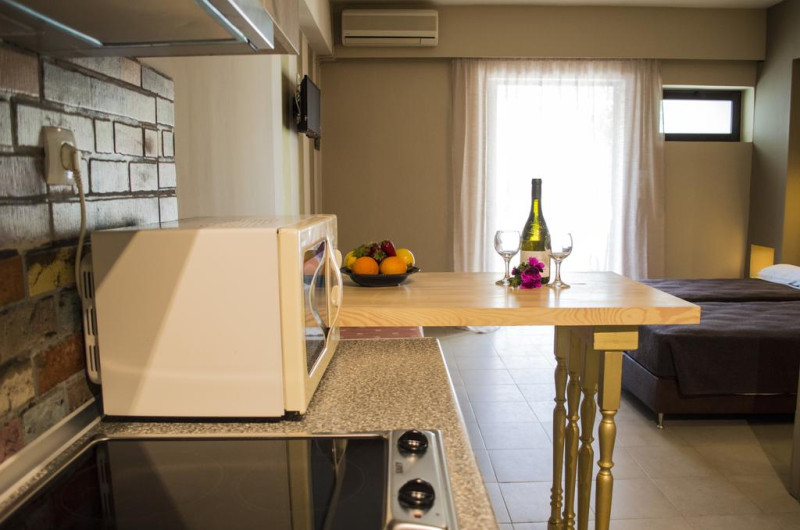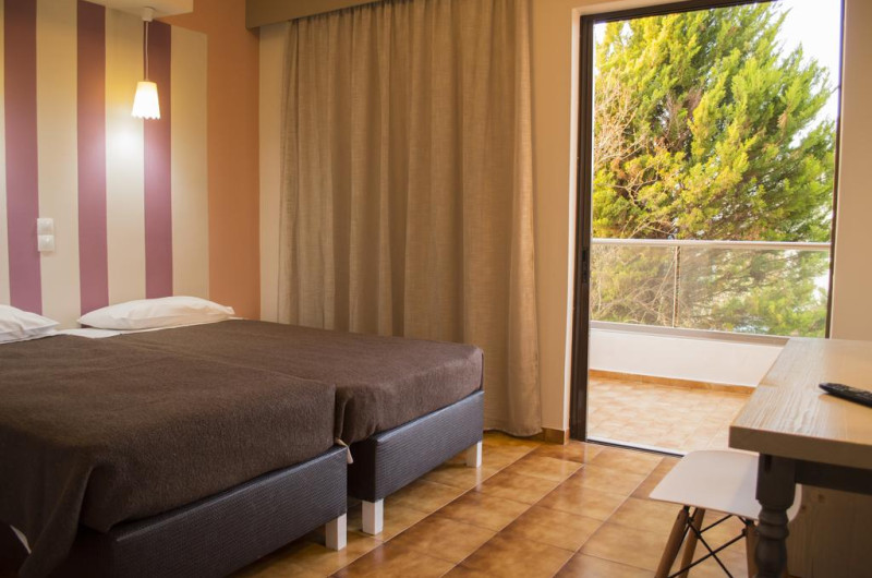 Sunt disponibile 27 camere. Camerele confortabile de la Nireas Hotel au pardoseală de gresie/ marmură, aer condiționat, Tv cu canale prin satelit și seif. În camere există baie cu cadă sau duș prevăzută cu foehn. Fiecare cameră dispune de mașină pentru preparare cafea sau ceai și fierbător Unele camere au balcon cu vedere la mare sau la piscină. Oaspeții au acces gratuit la serviciul Wi-fi în camere. Curățenia in cameră se face zilnic. Toate camerele spațioase de la Nireas Hotel au zonă de relaxare cu canapea, ceea ce oferă un plus de confort. Fiecare unitate de cazare include o chicinetă utilată cu frigider, plită de gătit și ustensile de bucătărie. De asemenea, sunt disponibile o zonă de luat masa și un cuptor cu microunde. Proprietatea oferă camere pentru familie cu o suprafață mai mare și un număr mai mare de paturi față de cele standard. Se pot rezerva de asemenea camere pentru nefumători.