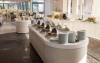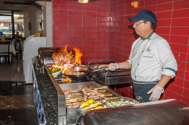 La Pearl Beach oaspeții au la dispoziție un restaurant care servește mâncare în stil bufet și à la carte. Preparate din bucătăria grecească așteaptă să fie degustate în fiecare zi. Masa poate fi servită atât în interior, cît si în aer liber, pe terasă, în funcție de vreme. Oaspeţii pot avea diverse băuturi răcoritoare sau alcoolice la bar. În cadrul proprietății există și un snack bar care servește băuturi și gustări.