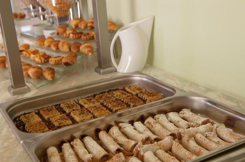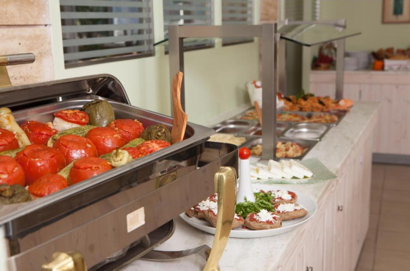 La Philoxenia Hotel & Spa oaspeții au la dispoziție un restaurant care servește mâncare în stil bufet și à la carte. Preparate din bucătăria grecească așteaptă să fie degustate în fiecare zi. Masa poate fi servită atât în interior, cît si în aer liber, pe terasă, în funcție de vreme. Oaspeţii pot avea diverse băuturi răcoritoare sau alcoolice la bar. În cadrul proprietății există și un snack bar care servește băuturi și gustări.
