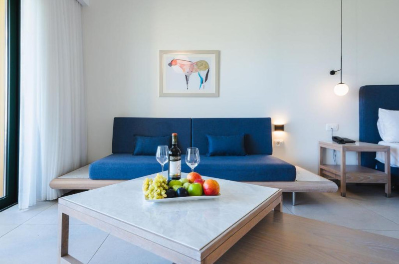 Sunt disponibile 78 camere. Unele camere au balcon cu vedere la mare, unde oaspeții pot admira apusul sau răsăritul soarelui. Camerele confortabile de la Silver Beach Hotel au pardoseală de gresie/ marmură, aer condiționat, Tv cu canale prin satelit și seif. Fiecare cameră dispune de mașină pentru preparare cafea sau ceai și fierbător În camere există baie cu cadă sau duș ce are în dotare foehn și articole de toaletă gratuite. Curățenia in cameră se face zilnic. Fiecare unitate de cazare include o chicinetă utilată cu frigider, plită de gătit și ustensile de bucătărie. Proprietatea oferă camere pentru familie cu o suprafață mai mare și un număr mai mare de paturi față de cele standard. Se pot rezerva de asemenea camere pentru nefumători.