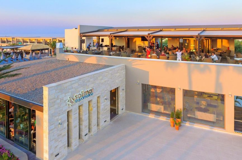 La Solimar Aquamarine oaspeții au la dispoziție 2 restaurante unde pot savura mâncăruri delicioase, în stil bufet sau à la carte. Preparate din bucătăria grecească și internațională așteaptă să fie degustate în fiecare zi la micul dejun, prânz și cină. Masa poate fi servită atât în interior, cît si în aer liber, pe terasă, în funcție de vreme. Oaspeţii pot avea diverse băuturi răcoritoare sau alcoolice la bar.