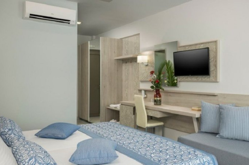 Sunt disponibile 56 camere. Oaspeții au la dispoziție serviciul de room service pentru a servi masa sau diverse băuturi. Unele camere au balcon, cu vedere la piscină, unde oaspeții se pot relaxa în voie. În camere există baie cu cadă sau duș ce are în dotare foehn și articole de toaletă gratuite. Camerele luminoase de la Vantaris Blue sunt dotate cu aer condiționat și Tv cu canale prin satelit. Oaspeții au acces gratuit la serviciul Wi-fi în camere. Curățenia in cameră se face zilnic. Toate camerele spațioase de la Vantaris Blue au zonă de relaxare. Fiecare unitate de cazare are frigider.