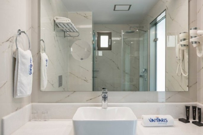 Din facilitățile oferite de proprietate (hotelul Vantaris Palace) nu lipsește centrul de wellnes și spa, unde oaspeții se pot relaxa la masaj, saună sau la baia cu aburi. Baia turcească face parte din oferta variată de servicii pe care le propune centrul spa. În cadrul proprietatății există piscină interioară pentru lunile mai reci sau pentru zile toride, precum și piscină exterioară unde oaspeții se pot relaxa și bronza în voie. Piscina exterioară este prevăzută cu șezlonguri confortabile, prosoape și umbrele de soare.