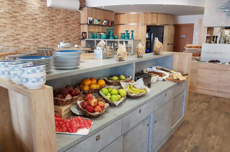 Oaspetii isi pot incepe ziua cu un mic dejun continental servit zilnic la restaurantul proprietătii, unde se pot bucura de bucătăria grecească pentru pranz si cină.