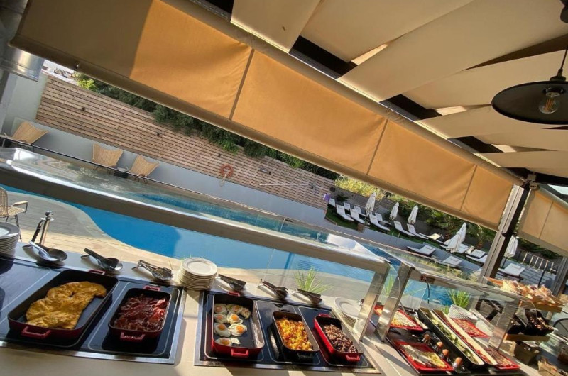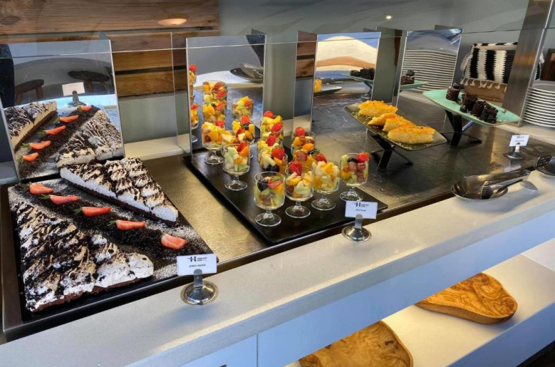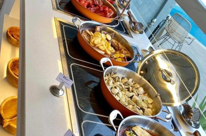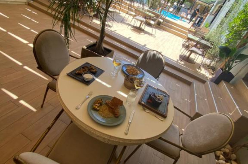 Proprietatea oferă un restaurant principal care servește delicatese mediteraneene și internaționale in stil bufet. Restaurantul à la carte Indigo oferă preparate inspirate din bucătăria italienească și cea grecească.