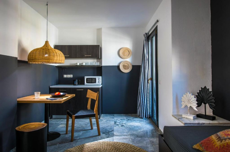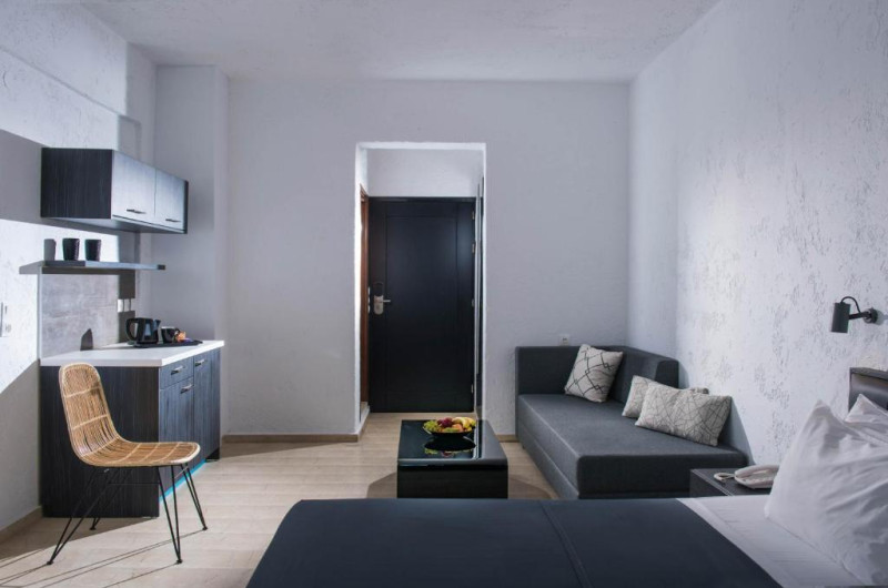 Fiecare unitate de cazare de la Indigo Inn Hersonissos este decorată modern, avand aer condiționat și vedere la orașul Hersonnisos. Toate pun la dispoziție TV prin satelit, minibar, masă, tacamuri, ceainic, aparat de cafea și uscător de păr. Baia include dus.