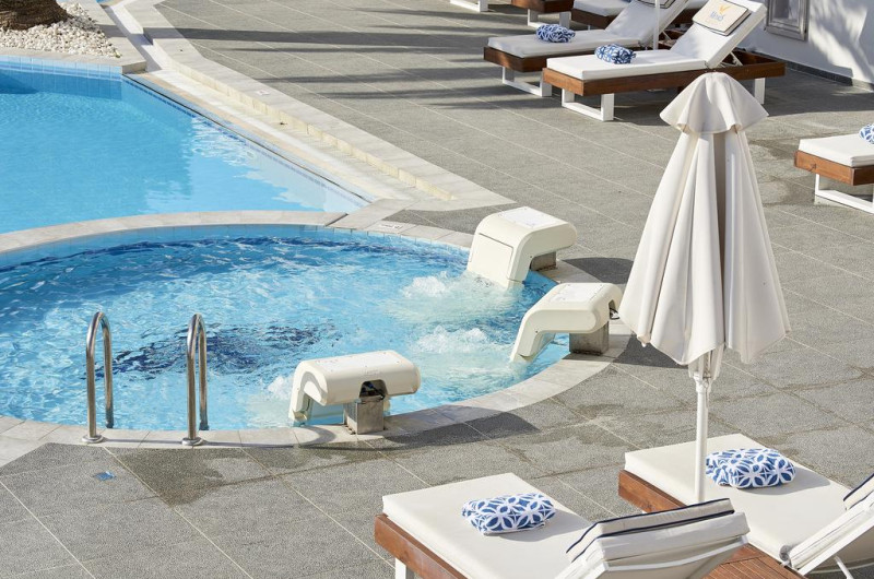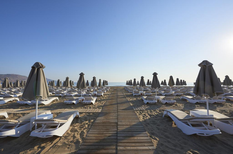 Mythos Palace Resort & Spa dispune de plajă privată cu nisip. Pe plajă există șezlonguri și umbrele de plajă contra cost.