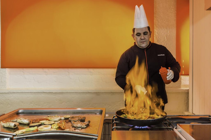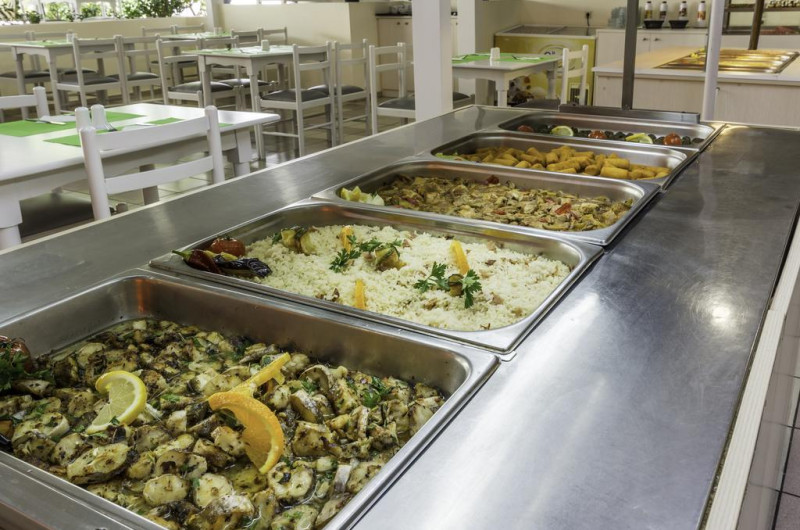 La Sergios oaspeții au la dispoziție un restaurant care servește mâncare în stil bufet. Preparate din bucătăria locală și internațională așteaptă să fie degustate în fiecare zi. Masa poate fi servită atât în interior, cît si în aer liber, pe terasă, în funcție de vreme. 2 baruri, dintre care unul la piscină, sunt disponibile cu o ofertă variată de băuturi răcoritoare și alcoolice.