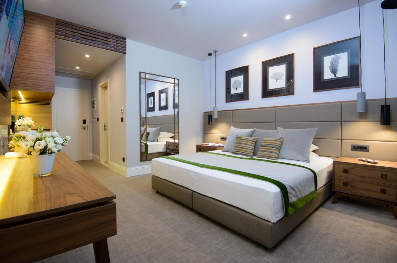 Facilitati camera dubla: pat matrimonial sau twin, baie proprie, uscator de par, Wi-Fi, aer conditionat, Tv prin satelit, minibar (contra cost).