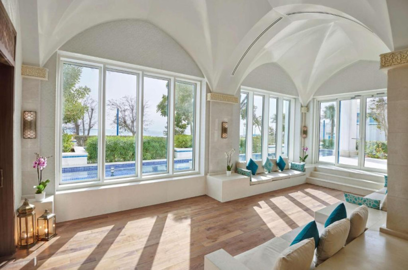 Unul dintre cele mai mari resorturi din Orientul Mijlociu, Hilton Salwa Beach Resort & Villas este o opțiune de neegalat, acesta oferind facilități luxury de clasă mondială. Hotelul Hilton Salwa Beach Resort & Villas dispune de 361 de locuri de cazare și detine unul dintre cele mai mari parcuri acvatice si de agrementdin Orientul Mijlociu - Desert Falls Water & Adventure Park. In cadrul resortului vei găsi 7 restaurante, piscine, un port de agrement, spa de lux și un centru de sănătate. Hilton Salwa Beach Resort and Villas oferă room service, un bancomat și schimb valutar pentru oaspeți. Aceast hotel de lux detine 3,5 kilometri de plajă privată.