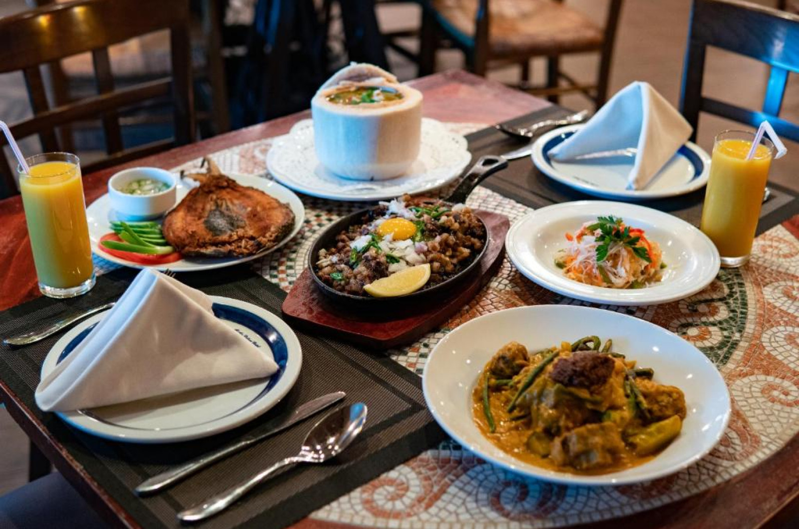 Există 5 restaurante la hotel care oferă o selecție variată de preparate internaționale, inclusiv restaurante de specialitate thailandeze, chinezești, japoneze și filipineze. Există, de asemenea, un pub in stil englezesc și un club de noapte.
