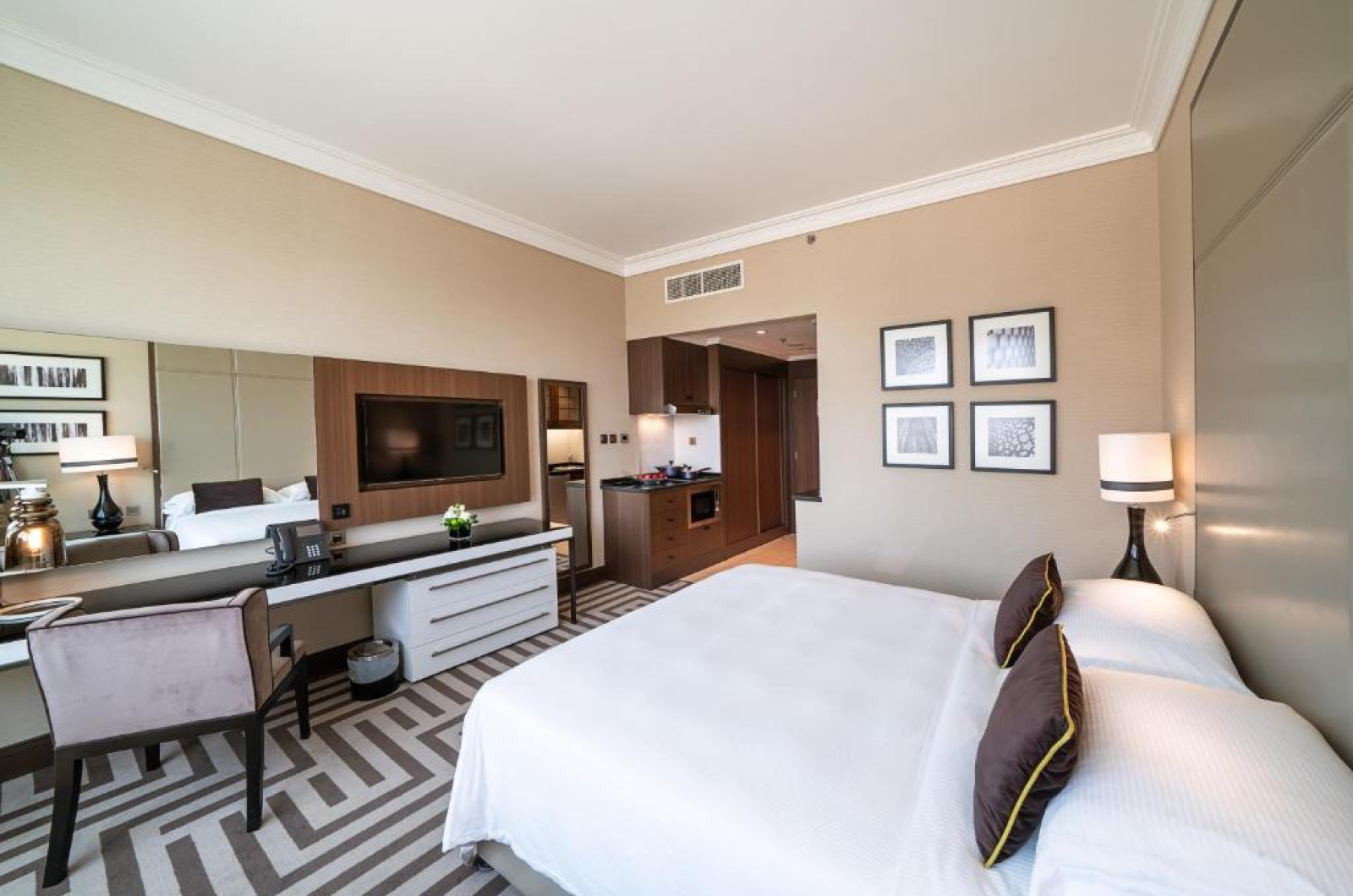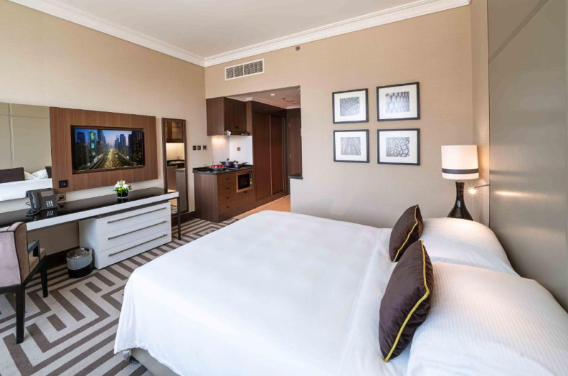 Fiecare cameră sau suită oferă o zonă de relaxare, conexiune la internet wireless, două linii digitale, ecran plat LCD cu sistem IPTV și birou executiv. Suitele au o chicinetă complet utilată.