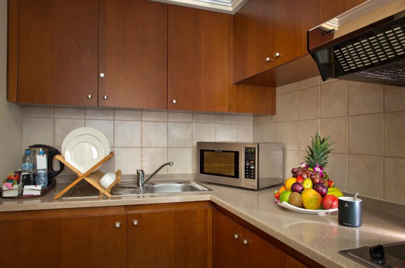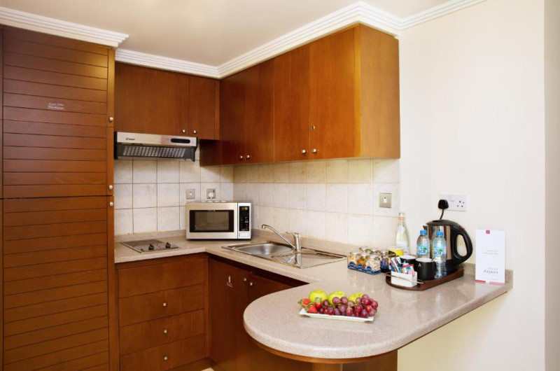 Camerele de la Al Rawda Arjaan by Rotana, Abu Dhabi au un decor elegant, in culori calde. Majoritatea camerelor includ o chicinetă și o zonă de relaxare cu TV prin satelit.