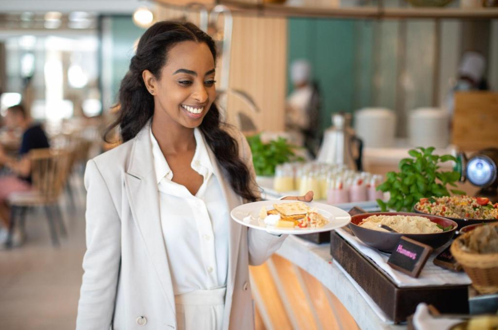 Oaspeții cazați la Delta Hotels by Marriott Dubai Investment Park au la dispoziție un mic dejun tip bufet. Acest hotel are un restaurant care servește mancăruri din bucătăria internațională. La cerere, sunt disponibile și preparate vegetariene, fără lactate și halal.