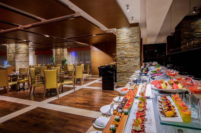 La Elite Byblos Hotel oaspeții au la dispoziție 2 restaurante unde pot savura mâncăruri delicioase, în stil bufet sau à la carte. Preparate din bucătăria internațională așteaptă să fie degustate în fiecare zi la micul dejun, prânz și cină. Masa poate fi servită atât în interior, cît si în aer liber, pe terasă, în funcție de vreme. Oaspeţii pot avea diverse băuturi răcoritoare sau alcoolice la bar. De asemenea , în cadrul proprietății, există cafenea și snack bar ideale pentru o gustare rapidă.