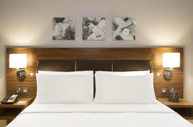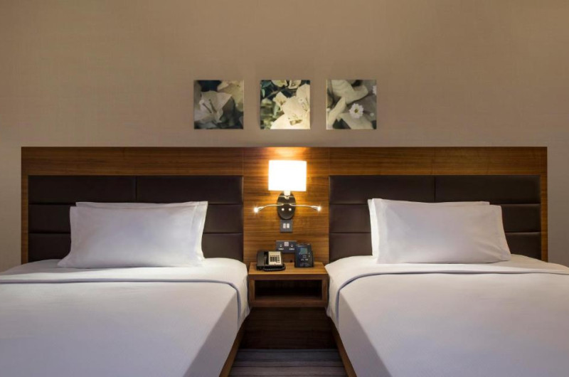 Camerele luminoase de la Hilton Garden Inn - Ras Al Khaimah sunt dotate cu mochetă, aer condiționat, Tv cu canale prin satelit și seif. Oaspeții au la dispoziție serviciul de room service pentru a servi masa sau diverse băuturi. Unele camere au vedere oraș. Oaspeții au acces gratuit la serviciul Wi-fi în camere. În camere există baie cu cadă sau duș ce are în dotare foehn și articole de toaletă gratuite. Curățenia in cameră se face zilnic. Proprietatea oferă camere pentru familie cu o suprafață mai mare și un număr mai mare de paturi față de cele standard.