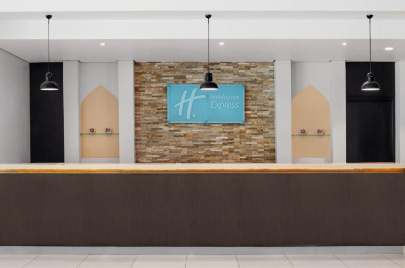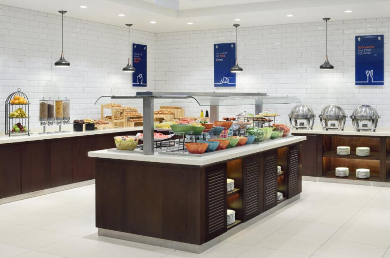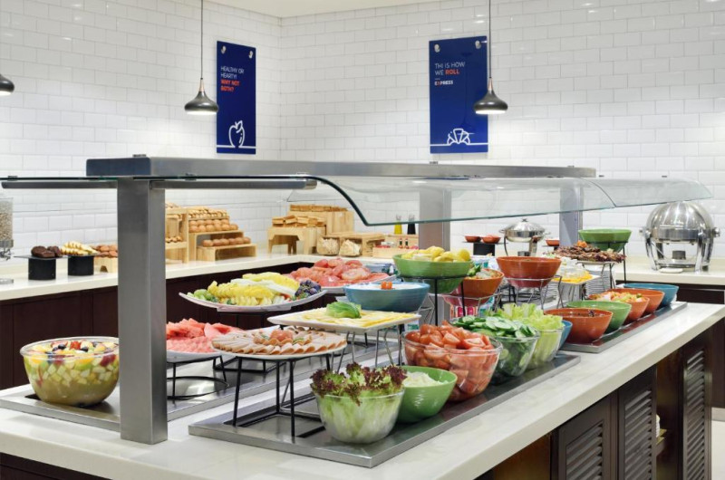 Micul dejun tip bufet este servit in fiecare dimineață in sala Great Room de la Holiday Inn Express. Oaspeții pot veni aici pe toate zilele pentru a săvoară sau sălătească sănătoasă sau o masă ușoară și gustoasă. Pe marele ecran din barul relaxat din hol se difuzează evenimente sportive.