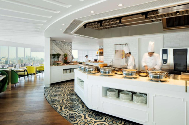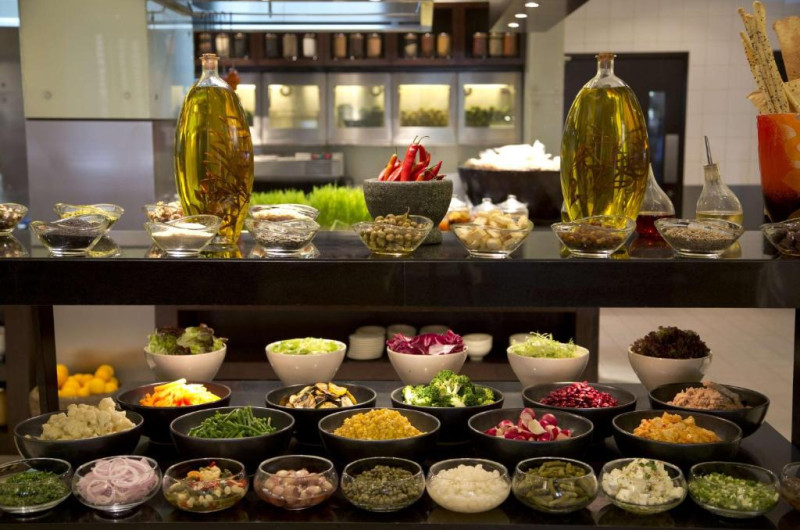 La Hyatt Regency Dubai oaspeții au la dispoziție 4 restaurante unde pot savura mâncăruri delicioase, în stil bufet sau à la carte. Preparate din bucătăria internațională, grecească, mediteraneană și asiatică așteaptă să fie degustate în fiecare zi. Masa poate fi servită atât în interior, cît si în aer liber, pe terasă, în funcție de vreme. 5 baruri, dintre care unul la piscină, sunt disponibile cu o ofertă variată de băuturi răcoritoare și alcoolice. În cadrul proprietății există și o cafenea care servește specialități din cafea și diverse delicatese. Pentru cei cu anumite nevoi de nutriție, Hyatt Regency Dubai oferă meniuri pentru diete speciale.