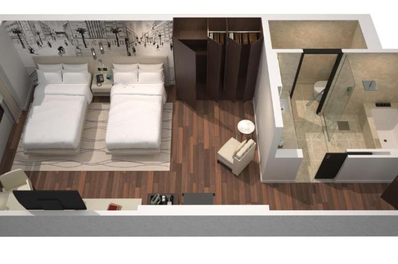 Camerele sunt spațioase și decorate intr-un stil urban luxos și relaxat, cu mobilier elegant in culori neutre, combinat cu accente artistice contemporane. Băile au blat din marmură luxos, cadă de sine stătătoare și cabină de duș, oferind spațiul ideal pentru relaxare sau ingrijire cu stil.