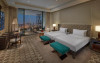 Camerele luminoase de la Mandarin Oriental Jumeirah Dubai sunt dotate cu parchet sau mochetă, aer condiționat, Tv cu canale prin satelit și seif. Fiecare cameră dispune de un aparat pentru preparare cafea sau ceai, cană-fierbător și minibar. Oaspeții pot solicita serviciul de room service pentru a servi masa sau diverse băuturi. În camere există baie cu cadă sau duș, foehn, articole de toaletă gratuite, precum și halate de baie și papuci. Oaspeții au acces la serviciul Wi-fi în camere contra cost. Camerele au balcon cu vedere la mare sau la oraș. Curățenia in cameră se face zilnic.